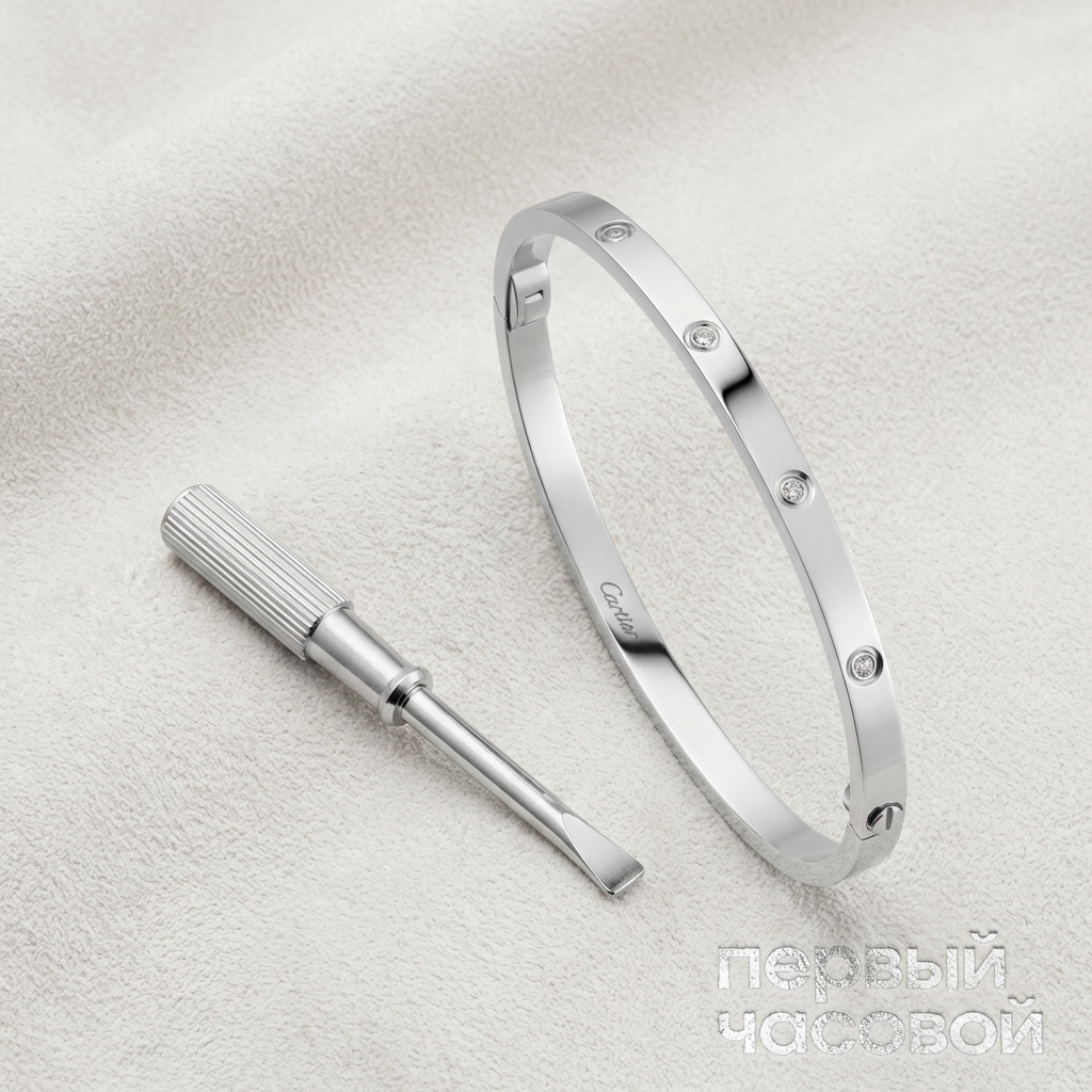 Здесь мы имеем дело с одной из самых ликвидных позиций на вторичном рынке — модель LOVE в белом золоте, Ref B6048017. С точки зрения геммологии, 10 бриллиантов на 0.21 ct — это «крошка», которая не несет инвестиционной ценности отдельно от изделия, однако именно в этом референсе камни существенно поднимают статусность и цену лота. Золото 750 пробы в белом цвете требует аккуратной носки, но отлично поддается полировке. Главный актив этого лота — не металл и не камни, а бренд в сочетании с полным комплектом (коробка и документы). Наличие бумаг нивелирует риски и подтверждает аутентичность, что критически важно для удержания высокой перепродажной стоимости. Вы платите высокую наценку за имя Cartier, но благодаря высокой оборачиваемости этой модели, деньги фактически консервируются в активе.