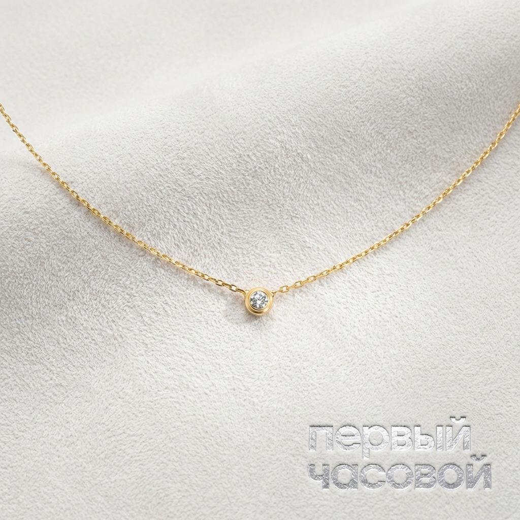 Колье Cartier из знаковой коллекции Diamants Légers воплощает философию утонченного минимализма, свойственную ДНК французского Дома. Центральной доминантой изделия выступает бриллиант круглой огранки весом 0,09 карата, демонстрирующий высокую степень сцинтилляции и безупречную игру света благодаря прецизионной геометрии фацетов. Камень интегрирован в оправу посредством глухой закрепки (bezel setting), которая, обволакивая рундист, визуально увеличивает диаметр вставки и создает эффект монолитного сияния. Теплая лигатура желтого золота 750 пробы контрастирует с холодным блеском минерала, усиливая его природную дисперсию. Архитектоника украшения завершается тончайшей якорной цепью, исполненной с ювелирной точностью для обеспечения идеальной посадки на ключицах.