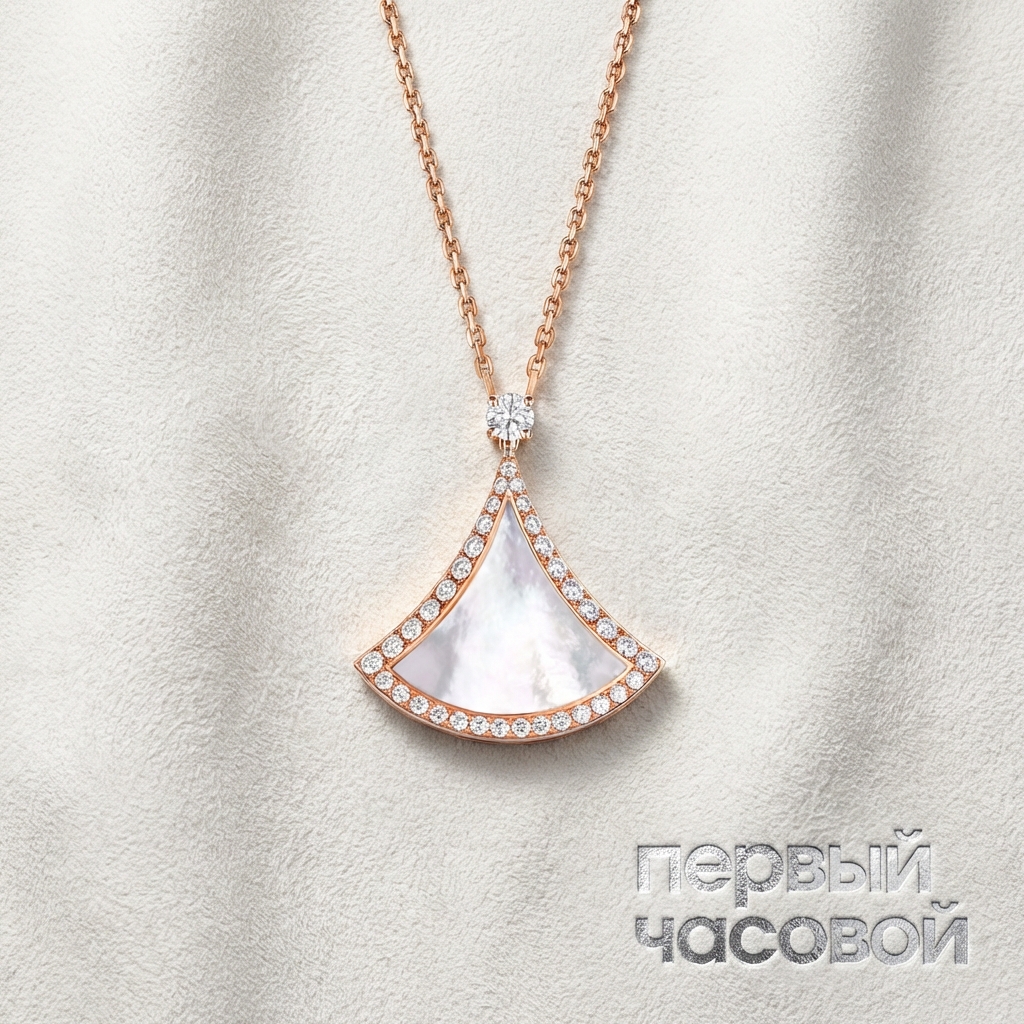 Это Bvlgari, референс 358671, и здесь мы имеем дело с одной из самых ликвидных позиций бренда — линейкой Diva's Dream. Сразу отмечу главный плюс лота: полный комплект с коробкой и документами, что для брендовой ювелирки критически важно, так как «голые» украшения теряют на вторичке до трети стоимости. Теперь по материалам: перламутр — материал хрупкий и капризный, но в данном случае пластина подобрана чистая, без микротрещин и желтизны, что говорит о правильном хранении. Бриллианты в 0.5 карата здесь выполняют функцию «подсветки» дизайна, но качество камней на уровне, «уголь» и мутные включения отсутствуют. Розовое золото — классический выбор для этой модели, оно менее подвержено визуальному старению, чем белое. Это покупка не ради инвестиции в камни, а плата за узнаваемый дизайн и высокую ликвидность бренда.