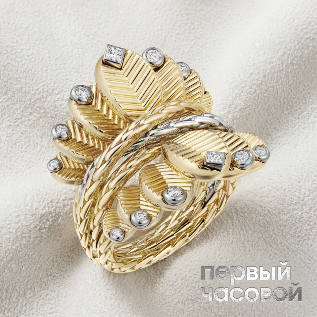 Кольцо Cartier, являющееся эталоном ювелирного конструктивизма, демонстрирует безупречное владение архитектурой малых форм. В основе композиции лежит сложная игра света, достигаемая сочетанием разнородных типов огранки: двенадцать бриллиантов классической формы КР-57 обеспечивают высокую сцинтилляцию, тогда как два камня огранки «принцесса» добавляют строгую геометрическую дисперсию и зеркальный блеск площадок. Общий вес вставок составляет 0,24 карата, однако благодаря прецизионной закрепке и эталонным характеристикам чистоты, камни демонстрируют исключительный «огонь». Оправа, выполненная из комбинации белого и желтого золота 750 пробы, отличается высочайшим качеством лигатуры и зеркальной полировкой, характерной для ДНК дома Cartier. Геометрия изделия выверена с математической точностью, превращая украшение в статусный объект коллекционного уровня.
