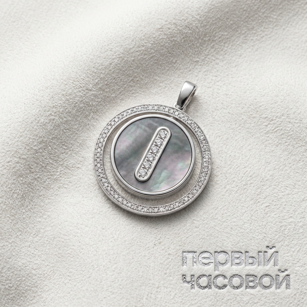 Колье Messika Lucky Move представляет собой эталон современной ювелирной кинетики, где строгая геометрия круга смягчена органической текстурой серого перламутра. Визуальный центр композиции — диск с уникальным природным рисунком, демонстрирующий характерный для качественного арагонита эффект иризации, который контрастирует с холодным зеркальным блеском белого золота 750 пробы. Периметр медальона инкрустирован бриллиантами круглой огранки общим весом 0,3 карата, чья дисперсия усиливает светоотражающие свойства металла, создавая эффект сплошного сияющего гало. Ключевой элемент ДНК бренда — свободно скользящий в центральной канавке солитер в глухой закрепке — добавляет изделию динамику, превращая украшение в объект высокого ювелирного дизайна.
