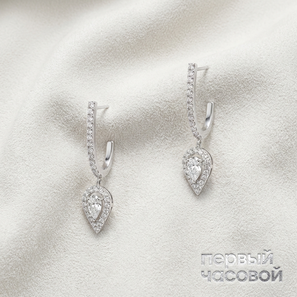 Серьги-хупы Messika из коллекции Joy воплощают фирменную эстетику «алмазной невесомости», характерную для ювелирного дома Валери Мессика. Центральные бриллианты огранки «груша» весом по 0,10 карата каждый обладают высокими геммологическими характеристиками цвета F и чистоты VS, обеспечивая интенсивную сцинтилляцию и холодный спектральный огонь. Архитектоника изделия выстроена вокруг ореола микропаве, который визуально увеличивает площадь короны центрального камня, создавая иллюзию единого светового монолита. Оправа из белого золота 750 пробы с высококачественным родированием выполнена с минимальным использованием металла, что позволяет свету беспрепятственно проникать сквозь павильон камней, максимизируя их дисперсию. Геометрия украшения длиной 21 мм сочетает классическую форму кольца с современной динамикой асимметричной огранки.