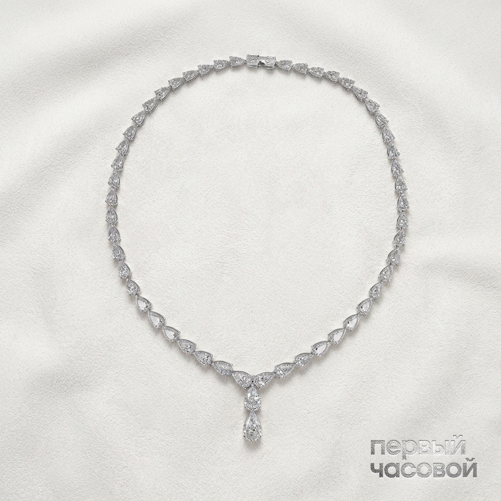 Ювелирное изделие Studio jewelry являет собой эталонный образец работы с бриллиантами высоких инвестиционных характеристик, где главенствующую роль играет природная чистота минералов. Композиционным центром выступает солитер весом 2,01 карата с характеристиками цвета F и чистоты VVS1; практически полное отсутствие азотных включений позволяет свету беспрепятственно проходить сквозь грани павильона, создавая исключительную дисперсию и «огонь» камня. Архитектонику украшения поддерживают 55 бриллиантов общим весом 26,57 карата диапазонов E-F-G/VVS-VS, подобранные с геммологической точностью для создания эффекта непрерывного сияния. Оправа из белого золота 750 пробы, покрытая слоем родия, выполнена с использованием минималистичной закрепки, что позволяет нивелировать визуальное присутствие металла и акцентировать внимание на сцинтилляции камней.