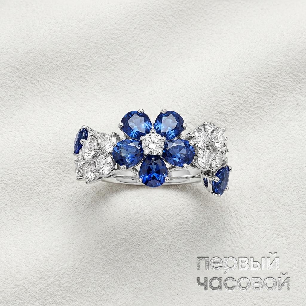 Кольцо Van Cleef & Arpels демонстрирует эталонную эстетику высокого ювелирного искусства, воплощенную в холодном блеске белого золота 750 пробы. Доминантой композиции выступают 7 сапфиров общим весом 2,72 карата, обладающие глубокой насыщенностью и характерным стеклянным блеском, свойственным корундам высшей категории. Их благородный синий оттенок контрастирует с ореолом из 15 бриллиантов массой 1,31 карата, чьи высокие показатели дисперсии создают эффект непрерывной сцинтилляции, усиливая «огонь» центральной группы камней. Архитектоника изделия выдержана в классических традициях Дома: безупречная геометрия каста и ювелирная точность закрепки позволяют минимизировать визуальное присутствие металла, акцентируя внимание исключительно на оптических свойствах минералов. Наличие полного комплекта сопроводительной документации подтверждает аутентичность и коллекционную ценность данного экземпляра.