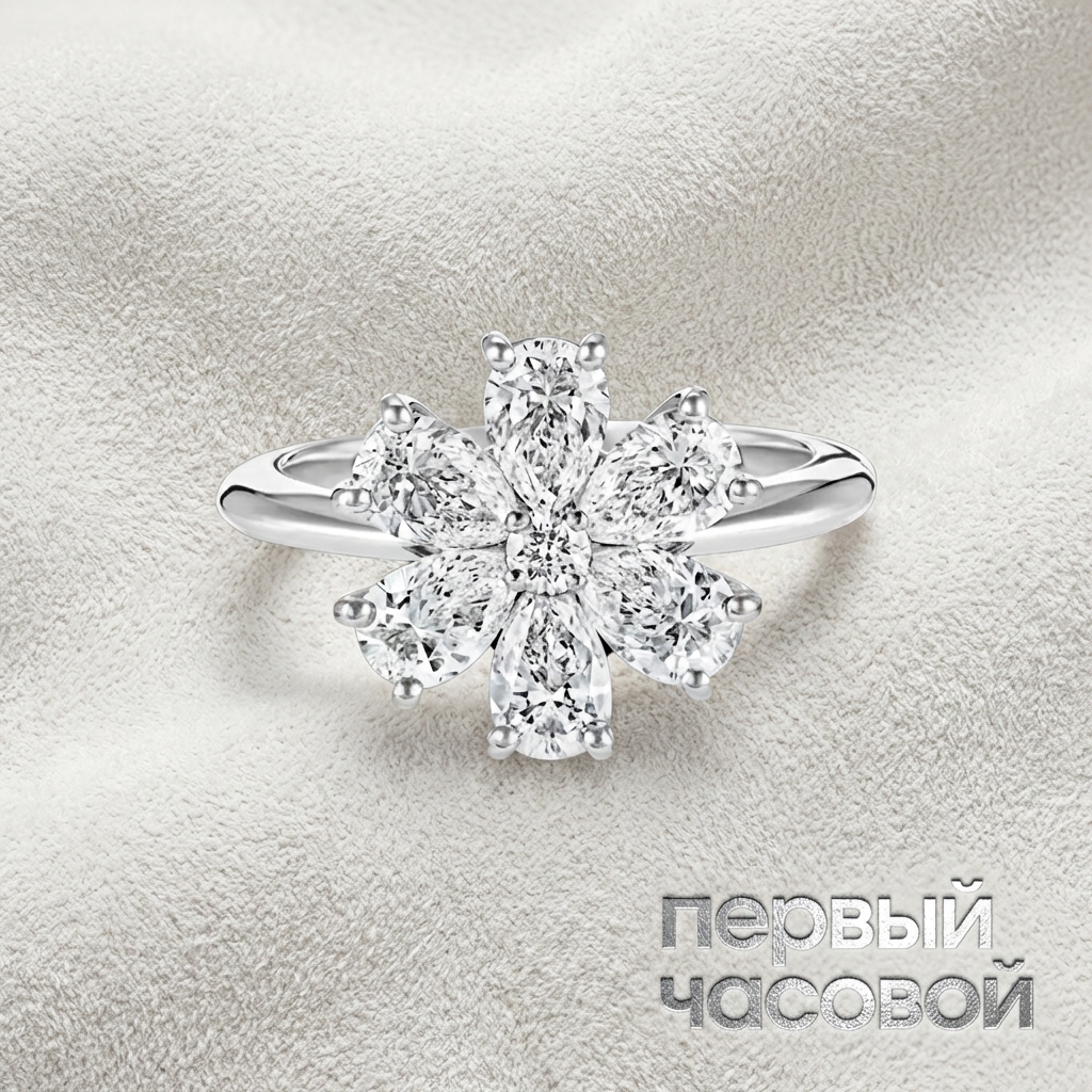 Кольцо Studio jewelry представляет собой эталонный образец работы с драгоценными минералами, где примат отдан природной чистоте сырья. Архитектоника изделия построена вокруг семи бриллиантов общей массой 1,33 карата, чьи характеристики Fine White/VS+ обеспечивают исключительную дисперсию и отсутствие видимых включений. Оправа из белого золота 750 пробы с гальваническим родированием служит нейтральным фоном, визуально сливаясь с рундистами камней и усиливая их холодный спектральный блеск. Закрепка выполнена с высокой точностью, открывая павильоны для максимальной инсоляции, что создает эффект непрерывной сцинтилляции при динамическом освещении.