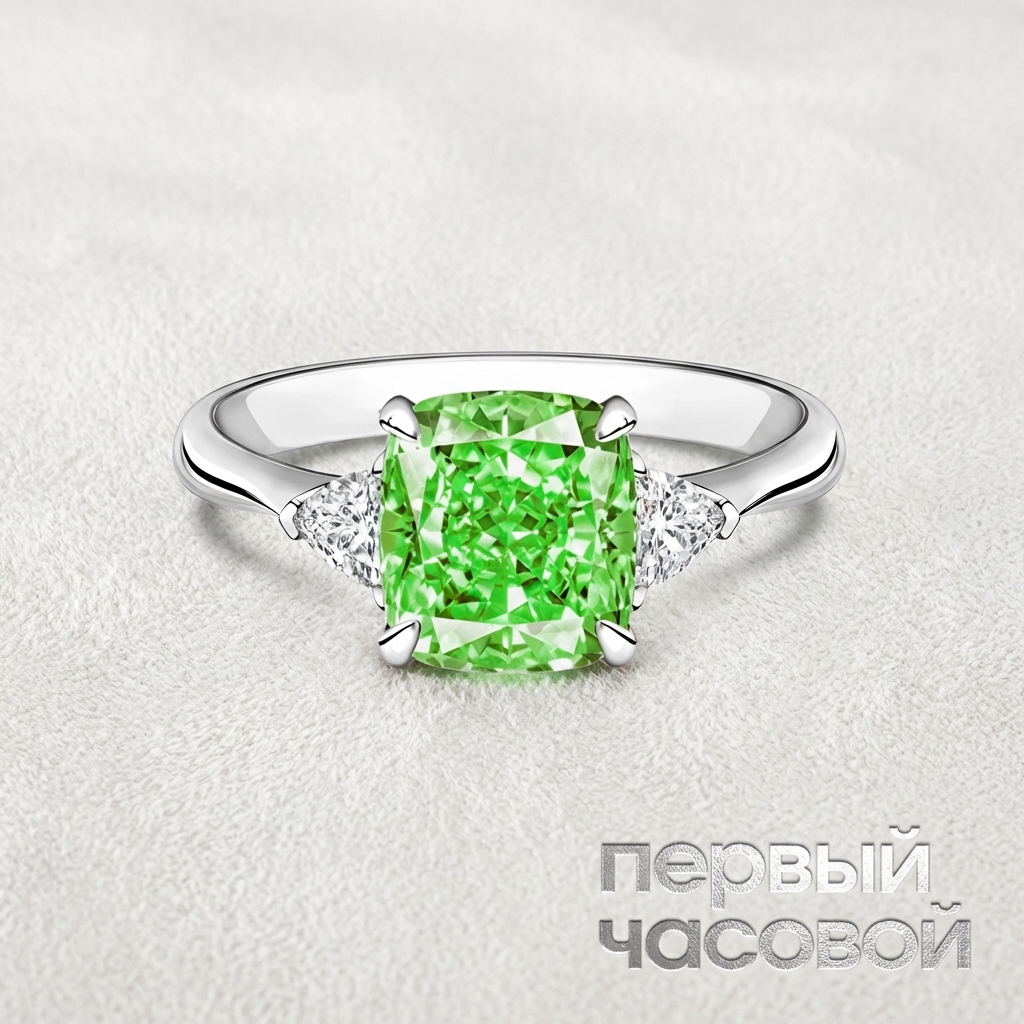 Кольцо Studio jewelry являет собой исключительный образец работы с цветными бриллиантами инвестиционного класса. Архитектурным центром композиции выступает редкий природный солитер весом 3,01 карата со сложной колористической формулой Fancy Light Brownish Greenish Yellow. Оптические свойства камня раскрываются через уникальную сцинтилляцию, где зеленовато-желтые оттенки создают эффект внутреннего свечения, а чистота VS2 гарантирует беспрепятственное прохождение света сквозь павильон. Геометрия изделия усилена двумя боковыми бриллиантами общей массой 0,60 карата (H/VS1), чья эталонная бесцветность создает холодный контраст с теплым спектром центральной вставки. Оправа из белого золота 750 пробы выполнена с минималистичной точностью, позволяя крапановой закрепке максимально открыть рундист камней для света.