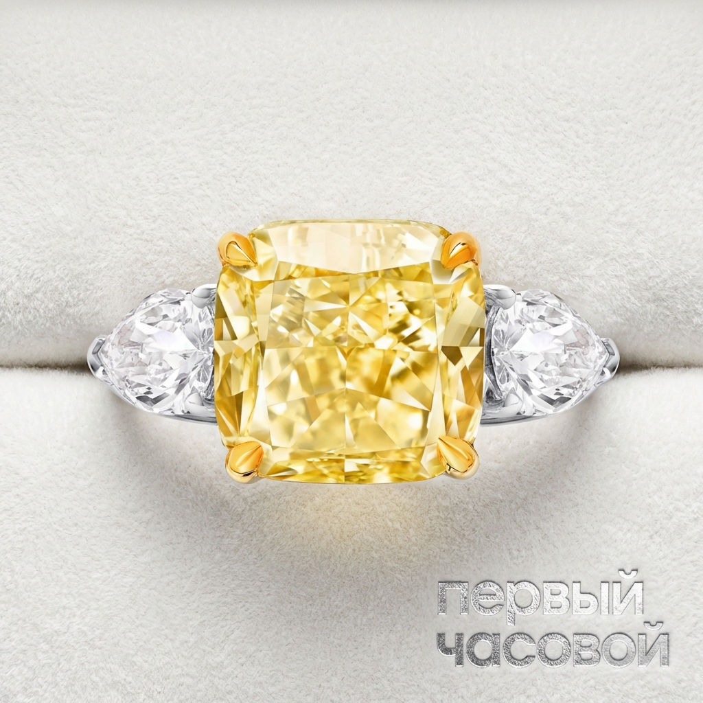Это классический пример «умной покупки», когда бюджет расходуется на реальные караты и характеристики, а не на маркетинговую наценку за имя. Центральный камень весом 7,50 ct — это серьезный актив, причем цвет Fancy Brownish Yellow позволяет получить внушительный визуальный объем за разумные деньги, так как он котируется иначе, чем чистые Fancy Yellow. Чистота Si1 на таком размере требует проверки сертификата, но обычно в цветных камнях включения не так заметны глазу, как в бесцветных. Отдельно отмечу качество боковых вставок: показатели F/VVS2 говорят о том, что на сырье не экономили, используя камни топового уровня для поддержки центра. Наличие документов и коробки закрывает вопросы юридической чистоты и ликвидности при возможной перепродаже. Это предмет для тех, кто понимает ценообразование рынка камней и ищет максимальный вес в бюджете.