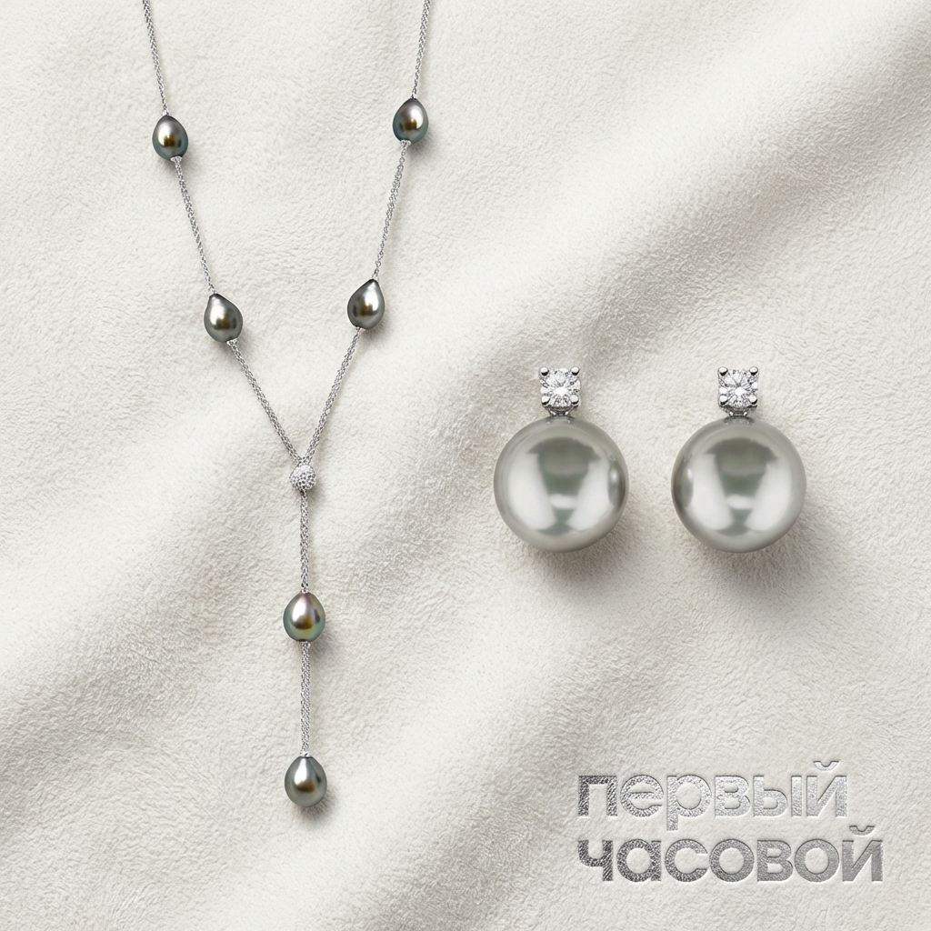 Ювелирное изделие Damiani представляет собой образец высокого итальянского ювелирного искусства, где архитектурная строгость металла вступает в диалог с органической мягкостью природных минералов. Композиционным центром являются культивированные жемчужины внушительного диаметра 10,3–11,3 мм, характеризующиеся глубоким люстром и равномерным распределением перламутрового слоя, создающим эффект внутреннего свечения. Бриллиантовая инкрустация, интегрированная в оправу из белого золота 750 пробы, выполнена с учетом максимального светопропускания, что обеспечивает высокую дисперсию и интенсивную сцинтилляцию камней. Холодный оттенок родированного сплава визуально усиливает чистоту вставок, подчеркивая статусность и геометрическую выверенность изделия в лучших традициях ДНК дома Damiani.