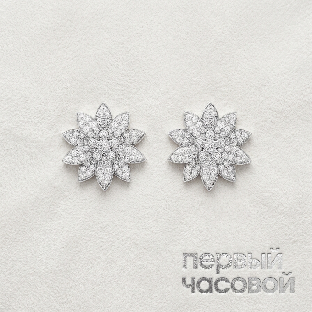 Кольцо Van Cleef & Arpels из знаковой коллекции Lotus демонстрирует виртуозный баланс между натуралистической эстетикой и строгими канонами высокого ювелирного искусства. Архитектоника изделия, выполненного из белого золота 750 пробы, построена на сложной системе шарниров Between the Finger, позволяющей трансформировать геометрию цветка на кисти. Визуальная доминанта украшения — сплошное ковровое паве из 162 бриллиантов общей массой 3,29 карата, где каждый камень подобран с геммологической точностью для создания единого светового потока. Благодаря безупречной огранке и отсутствию видимых участков металла между рундистами вставок, достигается эффект абсолютной дисперсии и холодной сцинтилляции, характерной для бриллиантов высших характеристик цвета и чистоты.