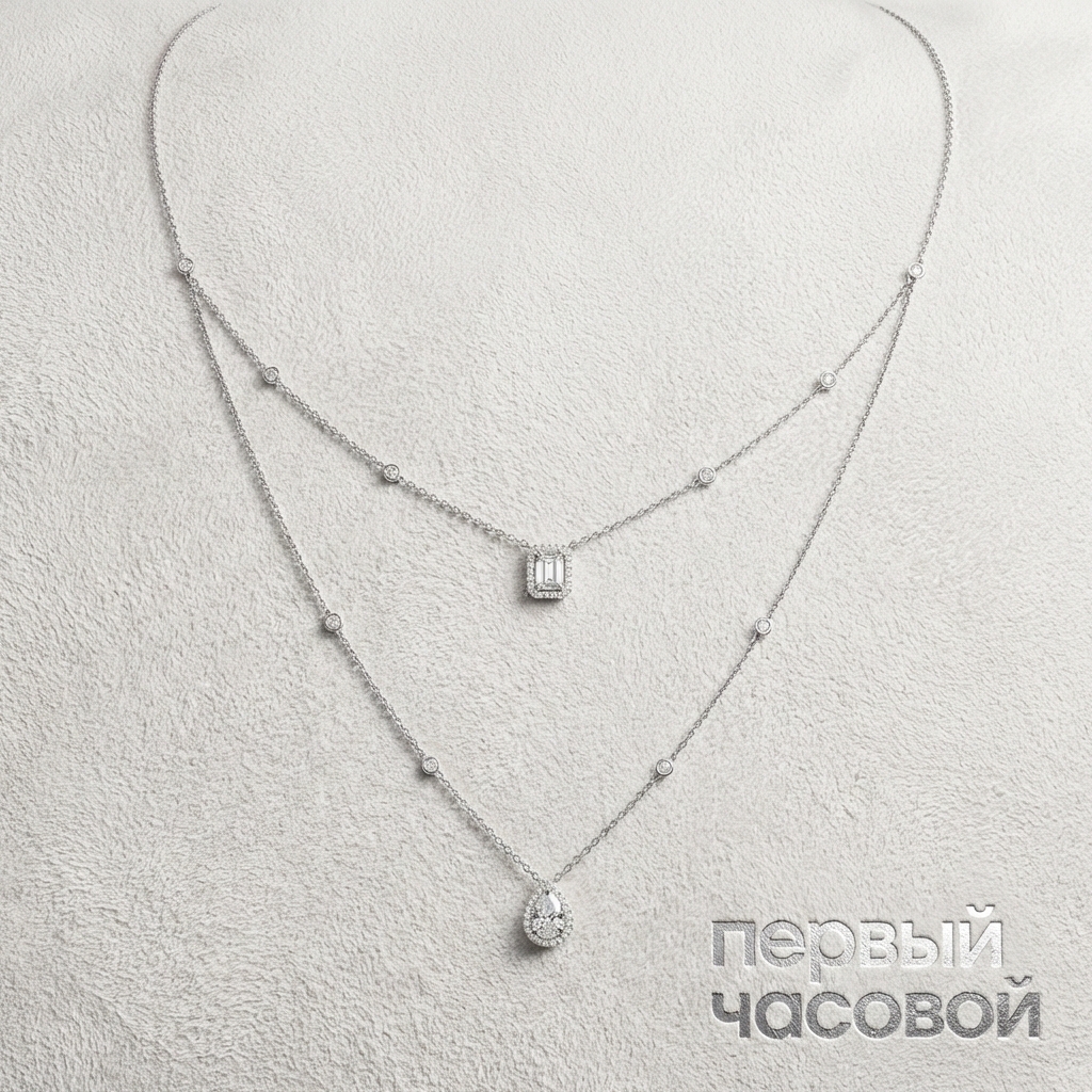 Колье Messika My Twin 2-Row представляет собой виртуозную интерпретацию концепции «Toi et Moi», воплощенную через контрастную геометрию огранок и архитектурную многослойность. Центральная композиция построена на диалоге двух солитирующих бриллиантов по 0,40 ct каждый: экспрессивная сцинтилляция камня огранки «груша» (Pear cut, E/VS1) противопоставлена строгому, зеркальному блеску ступенчатой огранки «эмеральд» (Emerald cut, E/VS2). Высокие характеристики цвета E обеспечивают исключительную оптическую прозрачность, которая усиливается за счет использования лигатуры белого золота 750 пробы с глубоким родированием. Периферийная инкрустация выполнена в технике микро-паве, доводящая общий вес изделия до 1,24 ct и создающая эффект непрерывной световой линии, где металл визуально отступает на второй план перед природным сиянием углерода.