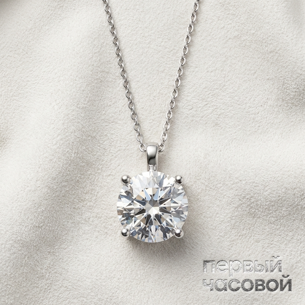 Колье Studio jewelry представляет собой эталон классического солитера, где архитектура изделия полностью подчинена демонстрации оптических свойств центрального элемента. Доминантой выступает бриллиант круглой огранки весом 1.04 карата, обладающий высочайшими характеристиками «Triple Excellent», что гарантирует максимальный возврат света через площадку и интенсивную сцинтилляцию. Цветовая категория E указывает на исключительную «ледяную» прозрачность минерала, а чистота VS1 свидетельствует об отсутствии инклюзий, различимых без лупы. Лаконичная оправа из белого золота 750 пробы с качественным родированием служит лишь техническим каркасом, позволяющим камню солировать в световом потоке.