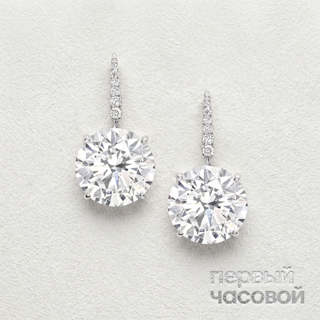 Серьги Studio jewelry представляют собой монументальное произведение ювелирного искусства, центром которого являются два исключительных бриллианта весом 10,12 и 10,13 карата. Геммологические характеристики камней (цвет G, чистота VVS2) в синергии с эталонной огранкой Triple Excellent обеспечивают феноменальную светоотдачу: входящий поток света претерпевает полное внутреннее отражение, распадаясь на спектральные составляющие и создавая эффект интенсивной дисперсии. Архитектура изделия выполнена из белого золота 750 пробы с применением техники сплошного бриллиантовым паве, что визуально нивелирует присутствие металла, оставляя лишь чистое сияние минералов. Конструкция оснащена надежным замком левербэк, который технически необходим для правильной балансировки столь крупных солиретров и фиксации их оптической оси перпендикулярно взгляду наблюдателя.