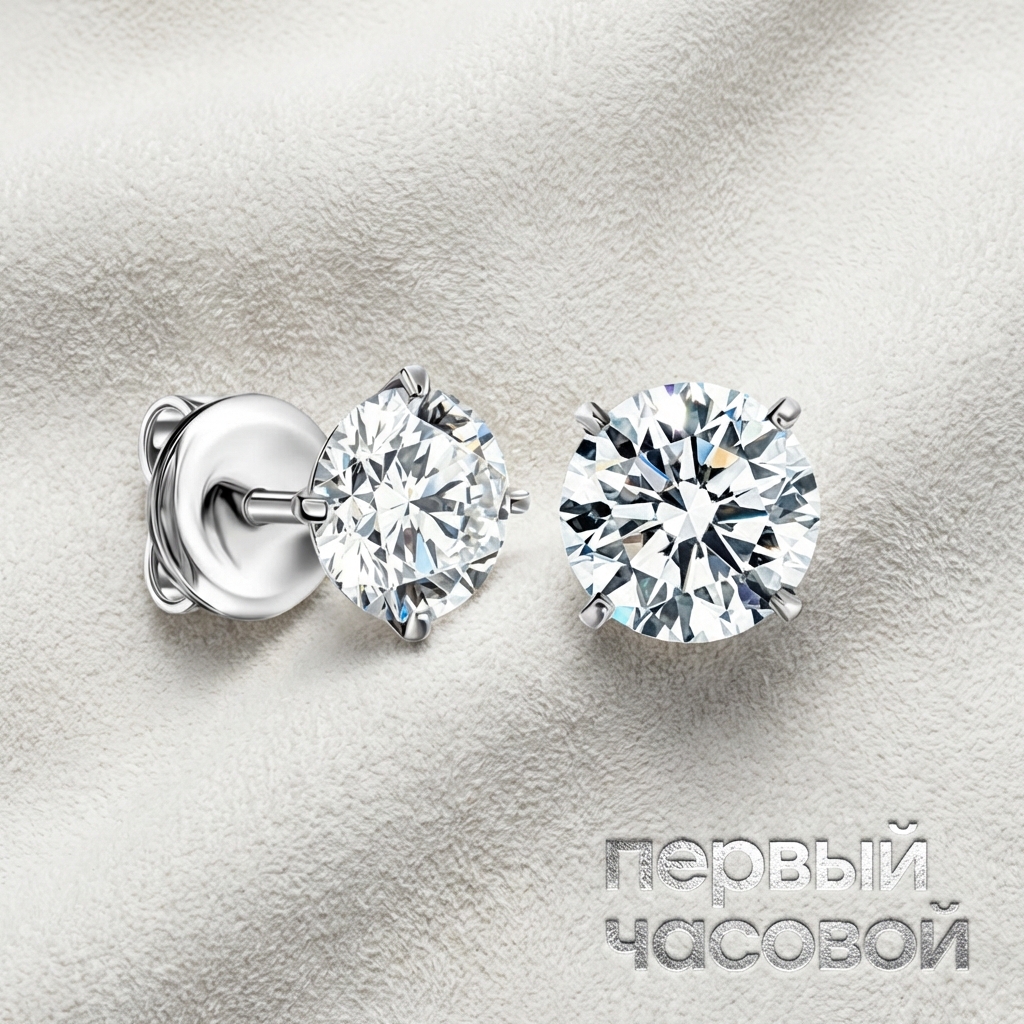 Перед нами классический пример рациональной инвестиции в «Studio jewelry», когда вы платите за физический актив, а не за маркетинговую наценку бренда. Два камня по 2.01 карата — это серьезный калибр, который всегда будет иметь ликвидность на вторичном рынке. Характеристики специфические, но рабочие: цвет L дает заметный теплый тон, однако топовая огранка «3 excellent» компенсирует это мощной игрой света, визуально «выбеливая» камень анфас. Чистота VS1 — это золотая середина, «уголь» и трещины отсутствуют, камень абсолютно прозрачный для глаза. Наличие документов и коробки снимает вопросы по происхождению и геммологическому соответствию. Замок на резьбе — обязательное требование для серег такого веса, потерять их невозможно. Это честное предложение для тех, кто ищет крупный размер и блеск без переплаты за имя.