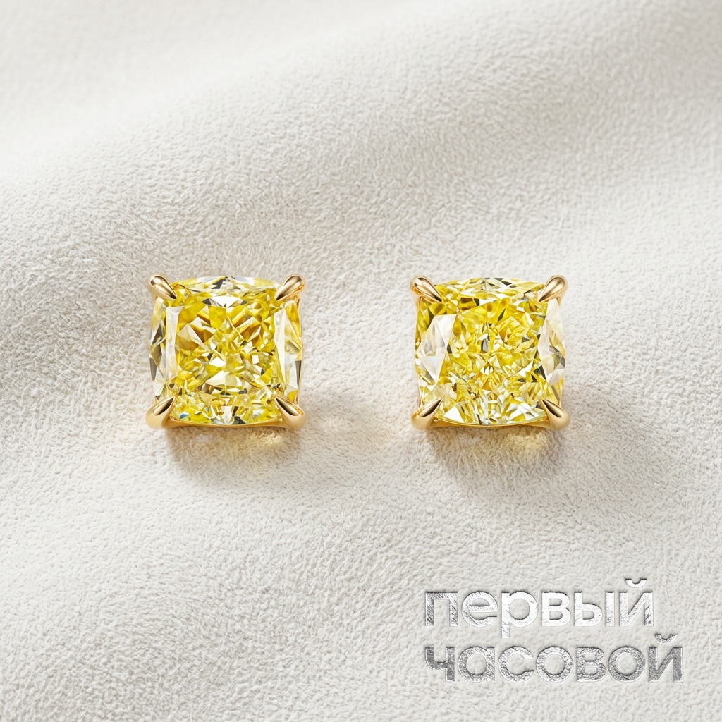 Серьги Studio jewelry являют собой образец пуристической эстетики, где главенствующую роль играет природная уникальность двух крупных солитуров. Композиция выстроена вокруг бриллиантов массой 1,20 и 1,31 карата, чьи цветовые диапазоны U-V и W-X демонстрируют благородный теплый спектр, идеально резонирующий с оправой из желтого золота 750 пробы. Высокая чистота камней, достигающая уровня VS1, обеспечивает беспрепятственное прохождение света сквозь грани и выраженную сцинтилляцию, превращая естественный оттенок минералов в преимущество. Техническое исполнение отличается строгостью: минималистичная закрепка открывает павильон камня для света, а штифтовой замок с винтовой резьбой гарантирует надежную фиксацию тяжеловесных вставок.