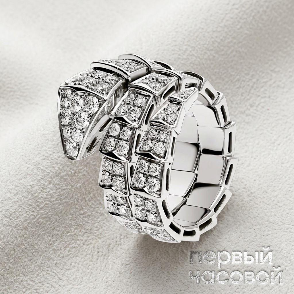 Кольцо Bvlgari воплощает в себе знаковую для римского Дома эстетику архитектурного объема и виртуозной работы со светом. Холодное белое золото 750 пробы служит строгим каркасом для сплошной инкрустации бриллиантами общим весом 2,77 карата, создающими эффект монолитного мерцающего полотна. Благодаря мастерской закрепке паве, границы между минералами визуально стираются, усиливая сцинтилляцию и возвращая наблюдателю максимальное количество спектральных вспышек. Безупречная геометрия рундистов и высокая чистота лигатуры подчеркивают статус изделия как эталона современного ювелирного искусства.