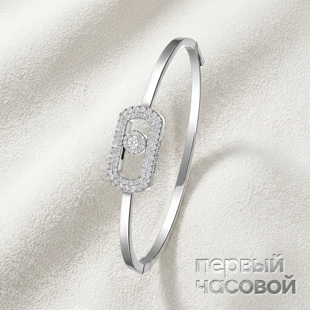 Messika сейчас — один из самых агрессивно растущих и ликвидных брендов на вторичном рынке, поэтому с точки зрения «парковки денег» в узнаваемое украшение это рабочий вариант. Перед нами белое золото, самый ходовой металл для этого бренда, который при наличии документов и коробки (а здесь полный сет) продается быстрее всего. Вы платите здесь не за вес камней или уникальность минералов, а за узнаваемый дизайн и мощный маркетинг Валери Мессика. Качество исполнения у них стабильное: закрепка надежная, камни подбирают с хорошими характеристиками по цвету, чтобы они не «желтили» на фоне белого сплава. Как актив — это твердая позиция с высокой оборачиваемостью, которая не зависнет в продаже на полгода.