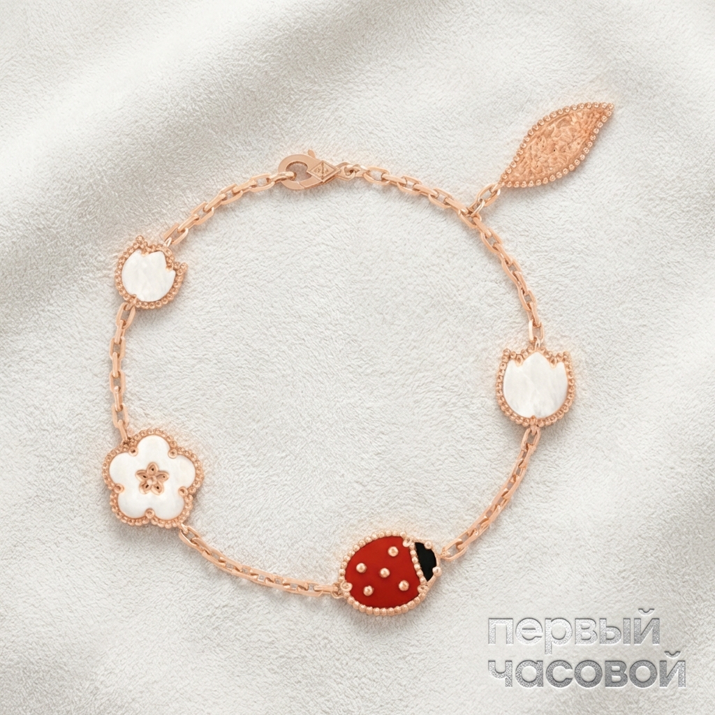 Это классический пример того, когда покупка украшения работает как финансовый инструмент благодаря силе бренда Van Cleef & Arpels. Наличие полного сета с коробкой и документами критически важно для VCA, так как это напрямую влияет на ликвидность и позволяет рассматривать лот как инвестиционный актив с минимальным риском потери стоимости. С прагматичной точки зрения, сочетание оникса и сердолика — удачный выбор для регулярной носки, это твердые породы, а вот перламутр требует внимания и проверки на отсутствие микротрещин, хотя здесь визуально вставки в идеальном состоянии. Розовое золото сейчас торгуется активнее желтого, а сам референс VCARP7RR00 достаточно популярен, чтобы не зависнуть в стоке. Вы платите высокую премию за имя, но в данном случае эта переплата защищена стабильным спросом на вторичном рынке.