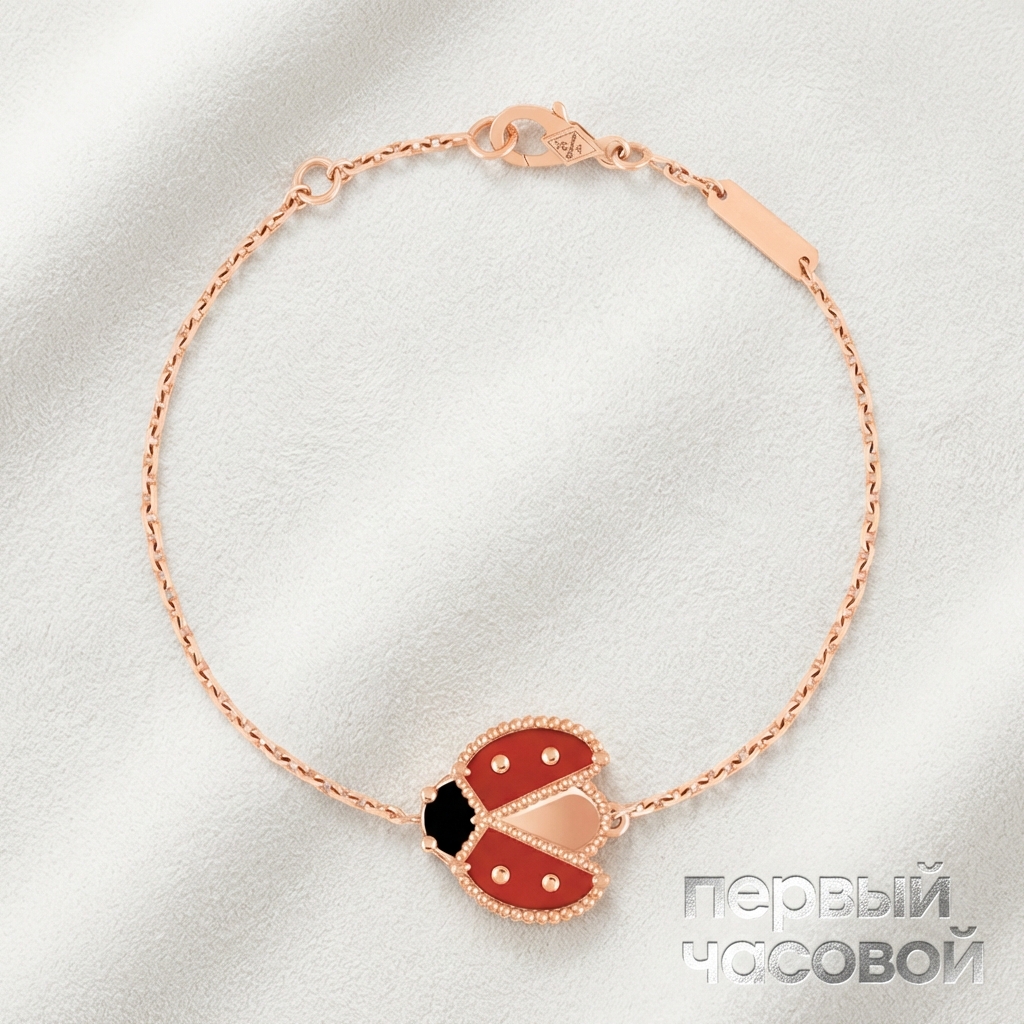 Van Cleef & Arpels — это тот случай, когда вы платите огромную наценку за имя, но рынок эту наценку полностью оправдывает высокой ликвидностью. Конкретно референс VCARP7R100 — отличный выбор с точки зрения прагматики: комбинация оникса и сердолика намного живучее, чем хрупкий малахит или перламутр, эти камни не тускнеют от воды и парфюма, что сохраняет актив в идеальном состоянии годами. Работа выполнена чисто, зернение по контуру не затерто, подбор вставок по тону идеальный. Наличие коробки и документов — критический фактор для VCA, без них дисконт был бы существенным, но здесь полный «фулл-сет», что гарантирует быструю реализацию при необходимости выхода в кэш. Это не просто украшение, а конвертируемая валюта, цена на которую в ритейле только растет.