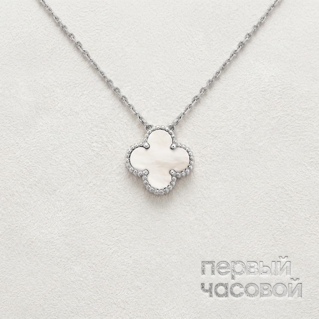 Это Van Cleef & Arpels, модель VCARF48700, и здесь работает чистая математика бренда, а не себестоимость материалов. С точки зрения геммологии, перламутр — это не инвестиционный камень, а декоративная вставка, которая требует бережного отношения, так как боится химии и воды. Однако в случае с VCA вы покупаете самую высокую ликвидность на рынке: этот «клевер» узнаваем моментально и всегда пользуется спросом. Белое золото — практичный выбор, оно меньше царапается, чем желтое, и выглядит современнее. Критически важно наличие полного комплекта (коробка и документы), который здесь присутствует: для брендовых вещей это гарантия аутентичности и плюс 20–30% к цене при последующей перепродаже. Это надежный актив для сохранения средств, который легко превратить в деньги.