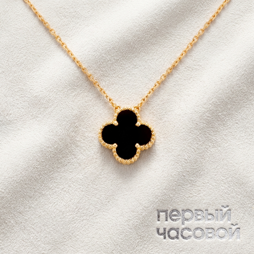 Перед нами самый ликвидный актив в сегменте брендовой ювелирки — классический «клевер» VCA в ониксе. Сразу к цифрам: здесь вы платите огромную наценку за имя, так как сам по себе оникс — недорогой поделочный камень, но в контексте Van Cleef & Arpels эта переплата оправдана железной ликвидностью изделия. Критически важно, что лот идет с полным комплектом (коробка и документы), так как без сертификата подлинности продать Alhambra по рыночной цене невозможно из-за обилия фейков. Оникс — самый практичный выбор для ежедневной носки: он не боится воды и косметики так, как перламутр или малахит, и не царапается так легко. Желтое золото в сочетании с черным камнем — это «коммерческая классика», которая всегда найдет покупателя. Это не столько украшение, сколько твердая валюта, которую можно носить на шее.