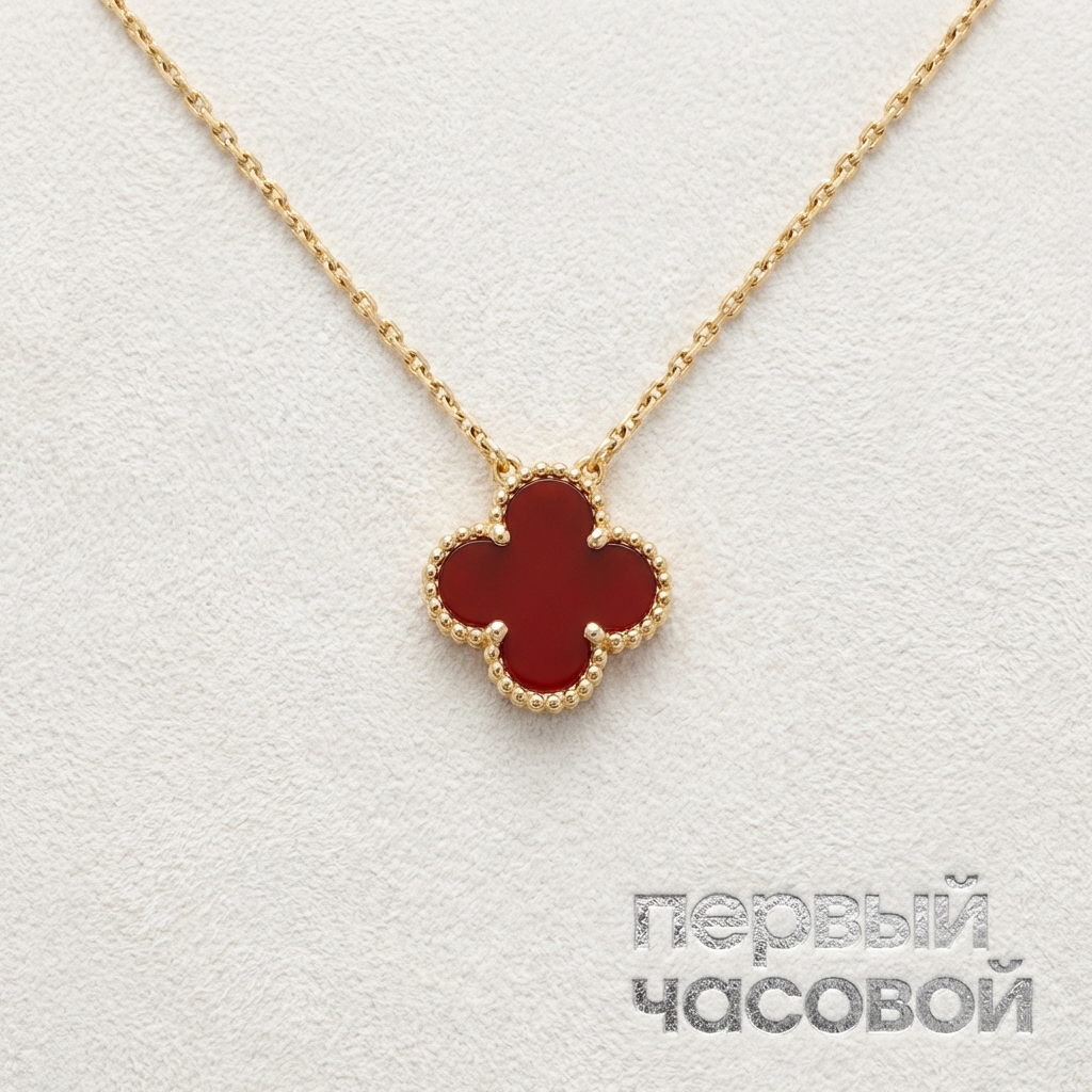 Это классический «голубой фишкой» ювелирного рынка — модель Sweet Alhambra, которая работает как банковский чек на предъявителя благодаря феноменальной узнаваемости. В данном лоте мы платим колоссальную наценку за имя, но она оправдана ликвидностью: сердолик подобран идеально ровный по тону, без мутных участков и зональности, что типично для контроля качества VCA. Работа с золотом 750 пробы выполнена технически безупречно, бусины окантовки не затерты, а глухая закрепка гарантирует, что вставка не выпадет при активной носке. Наличие полного комплекта с коробкой и документами переводит это украшение из разряда простого аксессуара в категорию надежного актива для сохранения средств.
