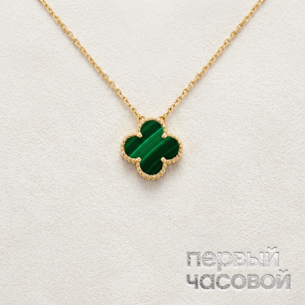 Классический референс VCARO9VA00 от Van Cleef & Arpels — это тот случай, когда переплата за имя абсолютно оправдана высокой ликвидностью актива на вторичном рынке. Малахит — камень мягкий и капризный, по шкале Мооса уступает многим минералам, поэтому при покупке важно убедиться, что предыдущий владелец не «убил» его водой или парфюмом, но в данном случае вставка выглядит достойно. Золотая окантовка выполнена без нареканий, крапана здесь отсутствуют, камень держится за счет геометрии оправы, что исключает риск выпадения при бережной носке. Наличие полного сета с коробкой и документами переводит это украшение из разряда простого аксессуара в категорию твердой валюты, которую легко реализовать без дисконта.
