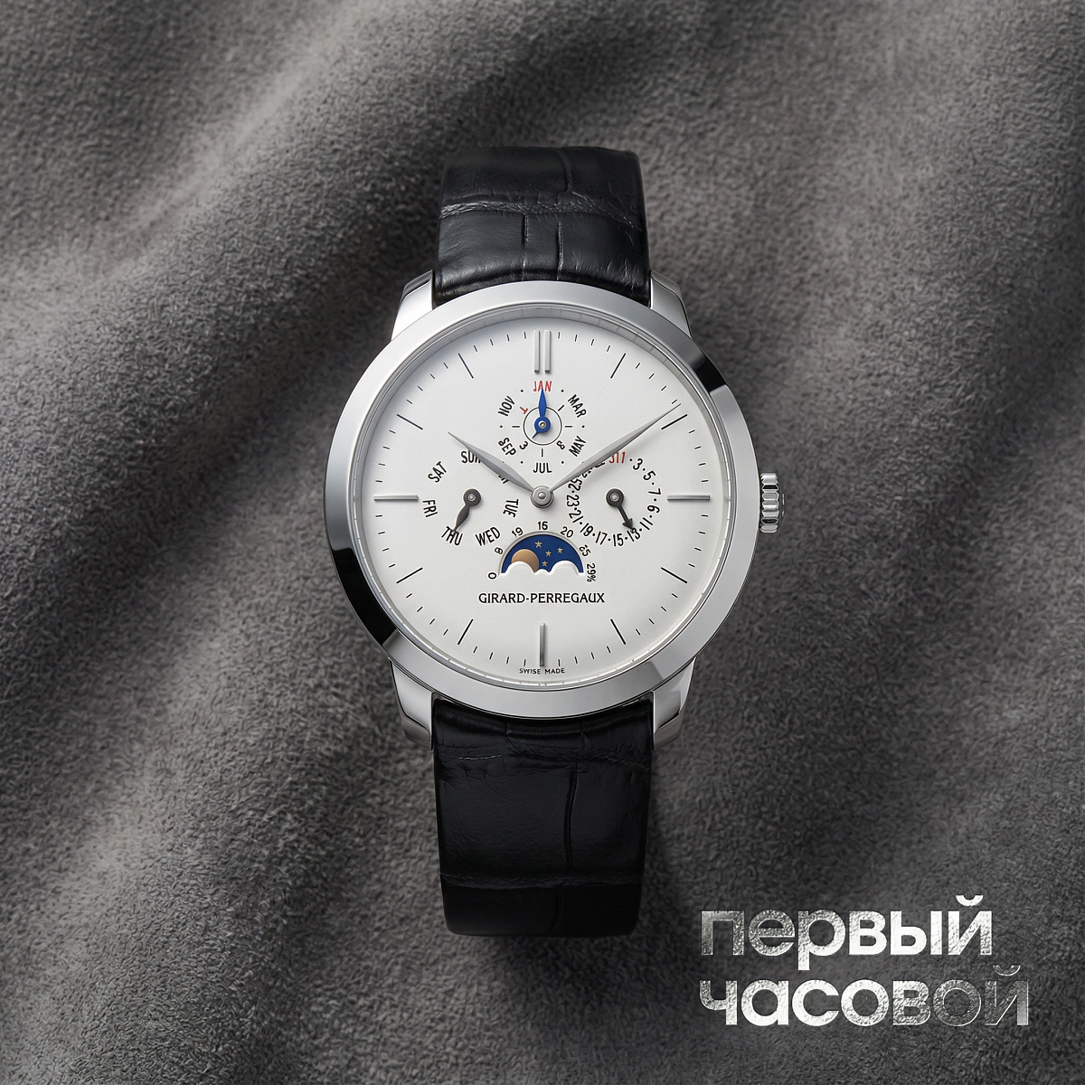 «Давайте честно: вечники (Perpetual Calendar) часто перегружены так, что читать время невозможно. Но здесь Girard-Perregaux сделали неожиданно чисто: классический 1966-й корпус в белом золоте, идеальные 40 мм и читаемость на уровне простых трехстрелочников. Внутри стоит калибр GP033Q0 — это прямая отсылка к их прорывным механизмам 60-х, только теперь с современными допусками по точности и надежности. По сути, вы получаете «умный» механизм в старой школе дизайна, который не требует корректировки даты десятилетиями.