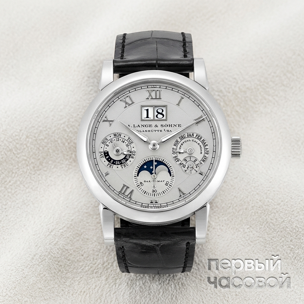 Сразу к делу: перед нами «тяжелый люкс» в самом прямом смысле этого слова. Платиновый корпус на 38-миллиметровом диаметре ощущается на запястье как свинцовый слиток, и это именно та приятная тяжесть, за которую платят деньги в высшем эшелоне. Это не просто часы, это Langematik с микроротором — механизм, который выглядит дороже, чем многие швейцарские турбийоны, благодаря немецкой трехчетвертной плате и ручной гравировке.