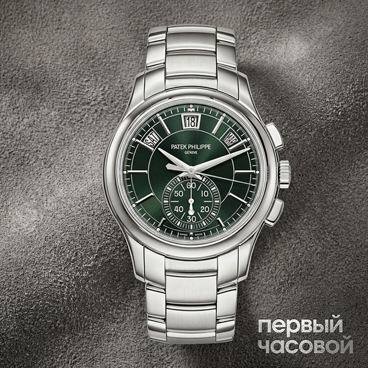 «Многие гоняются за перегретым «Наутилусом», но реальный часовой вес именно у таких моделей. Перед вами редкий зверь: сложный Patek Philippe с годовым календарем и хронографом, упакованный в сталь, а не в золото. Это сразу меняет правила игры на вторичном рынке — стальные усложнения у Патека всегда ликвиднее драгметаллов.
