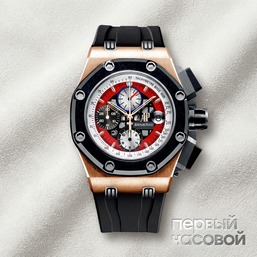 Референс 26284RO отличается сложной структурой циферблата с частичным скелетонированием, открывающим вид на платину механизма, и характерными пушерами хронографа, форма которых повторяет элементы двигателя болида. Техническая часть базируется на калибре AP 2326/2840 с модульной конструкцией хронографа и запасом хода 38 часов. Наличие документов подтверждает аутентичность экземпляра, однако отсутствие оригинальной коробки следует учитывать при оценке коллекционной комплектности лота.