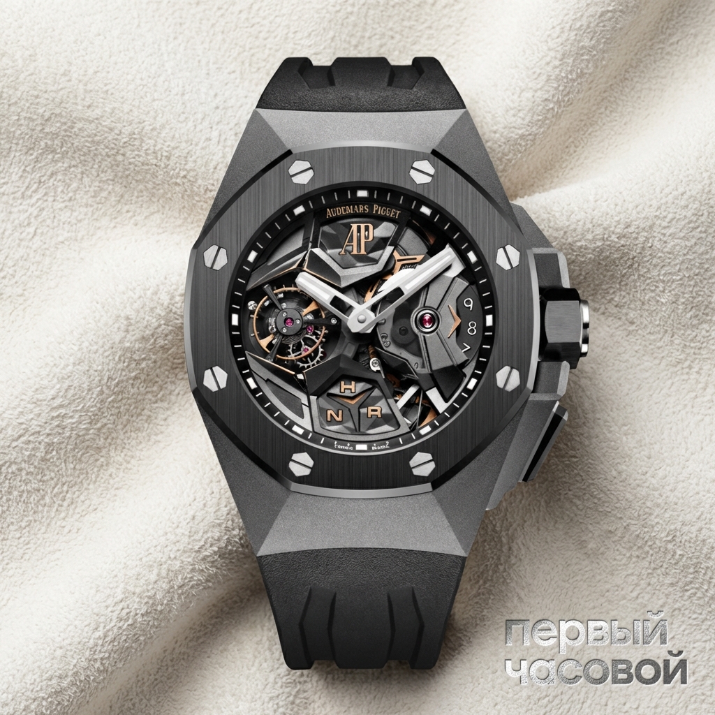 Сразу к делу: линейка Concept — это полигон Audemars Piguet, где они отходят от канонов Дженты и делают то, что хотят. Размер 44 мм звучит угрожающе, но благодаря титановому сплаву часы не ощущаются на руке как стальная гиря, вес распределен грамотно. Огромный плюс за керамический безель. Все мы знаем боль владельцев обычных Royal Oak, где широкий стальной рант ловит царапины от воздуха. Здесь керамика берет удар на себя, сохраняя товарный вид годами, что критически важно для сохранения остаточной стоимости.