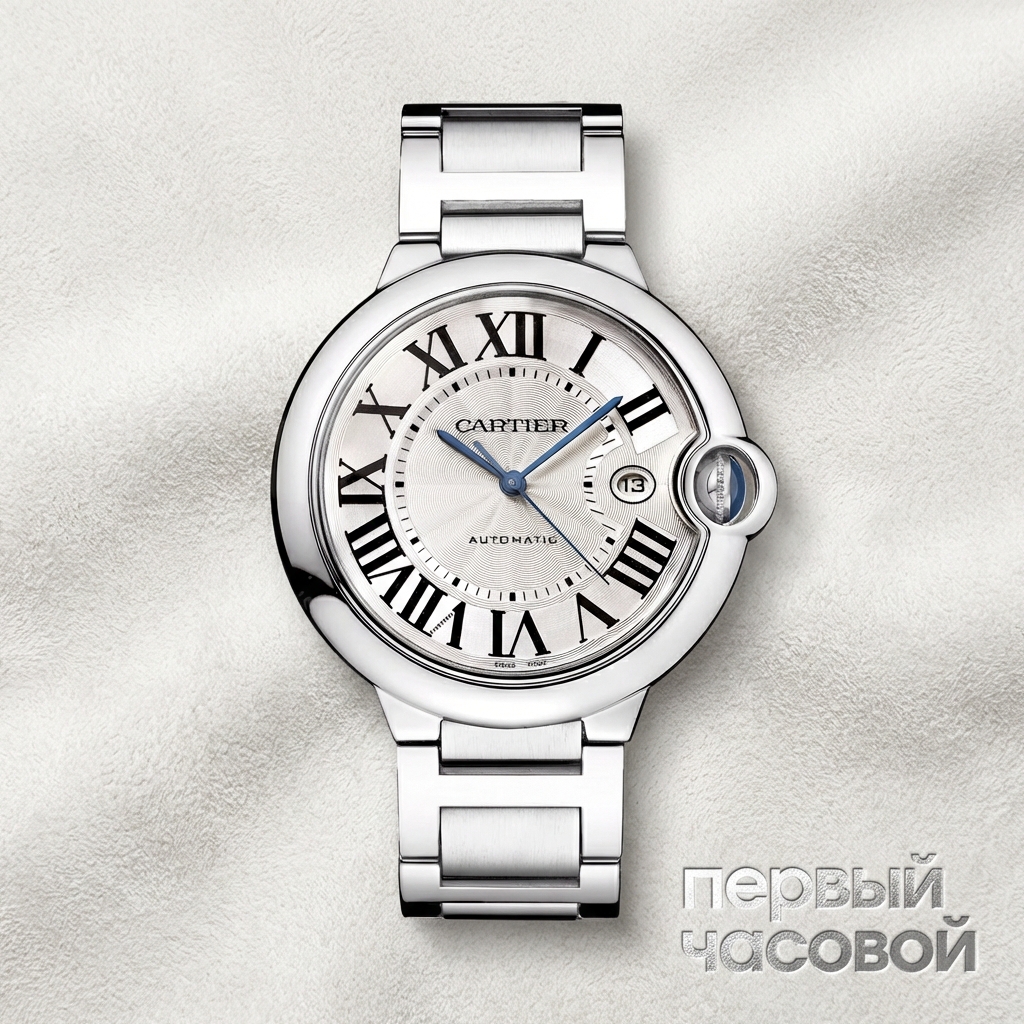 Ballon Bleu 42 мм — это тот случай, когда дизайн продает часы лучше, чем любые технические характеристики, хотя здесь с «начинкой» полный порядок. Перед вами референс WSBB0049 на базе мануфактурного калибра 1847 MC. Это надежный «трактор», который Cartier ставит в свои флагманы: он неприхотлив, дешев в обслуживании и обладает достаточной точностью для повседневной носки. Размер 42 мм на бумаге может отпугнуть обладателей тонких запястий, но благодаря отсутствию длинных ушек и обтекаемой форме «летающей тарелки», часы садятся комфортно даже на руку среднего размера.