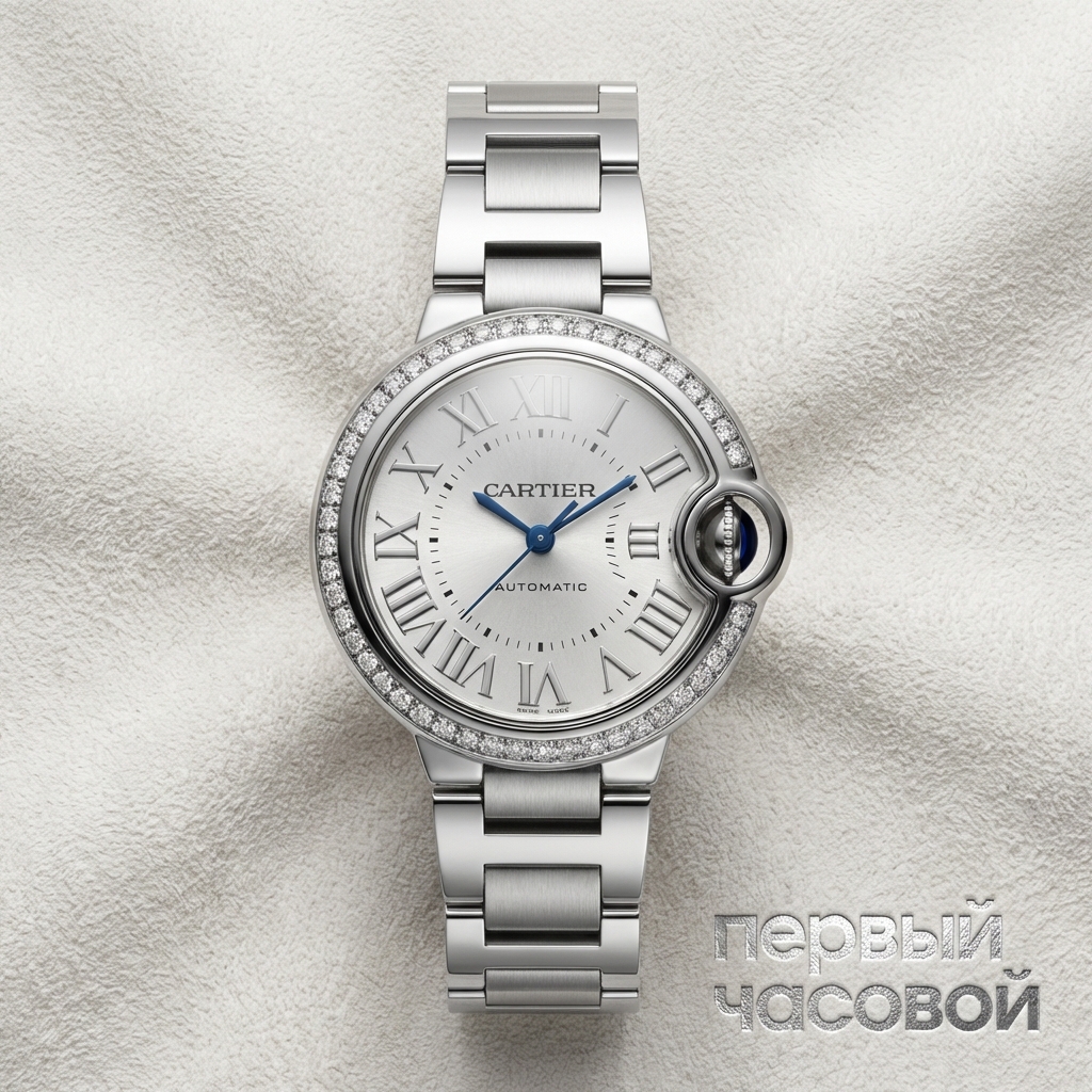 Ballon Bleu в 33-м кузове — это, пожалуй, самый ликвидный и понятный женский размер в современной линейке Cartier. Референс W4BB0028 интересен тем, что это не базовая стальная модель, а версия с заводскими бриллиантами по безелю. Акцентирую внимание на слове «заводские»: геометрия посадки камней и чистота закрепки здесь идеальные, в отличие от кустарного афтермаркета, который убивает стоимость часов. Сталь плюс бриллианты — это утилитарная роскошь. Часы можно носить каждый день под джинсы и белую рубашку, и они не будут выглядеть неуместно, как это бывает с полностью золотыми моделями.