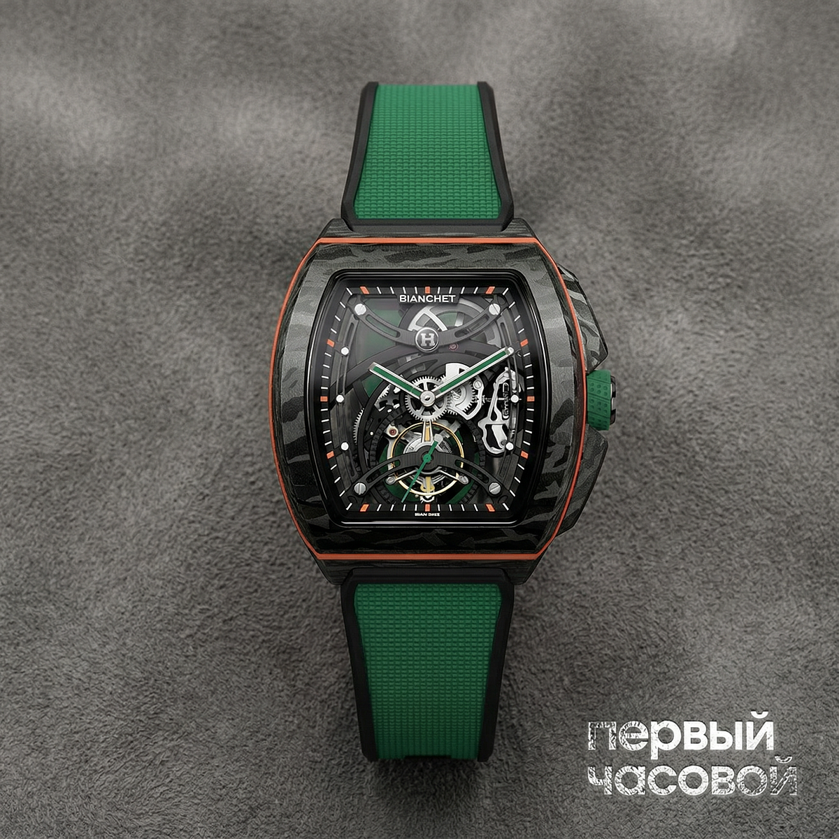 Bianchet Carbon Tourbillon Openwork (Ref: B1.618) представляет собой авангардный образец высокого часового искусства, выпущенный в единственном экземпляре (Unique Piece). Это современный скелетонизированный турбийон, в котором сложная микромеханика интегрирована в эргономичный корпус из композитных материалов. Модель ориентирована на коллекционеров, фокусирующихся на прогрессивной инженерии и технической исключительности независимых брендов.