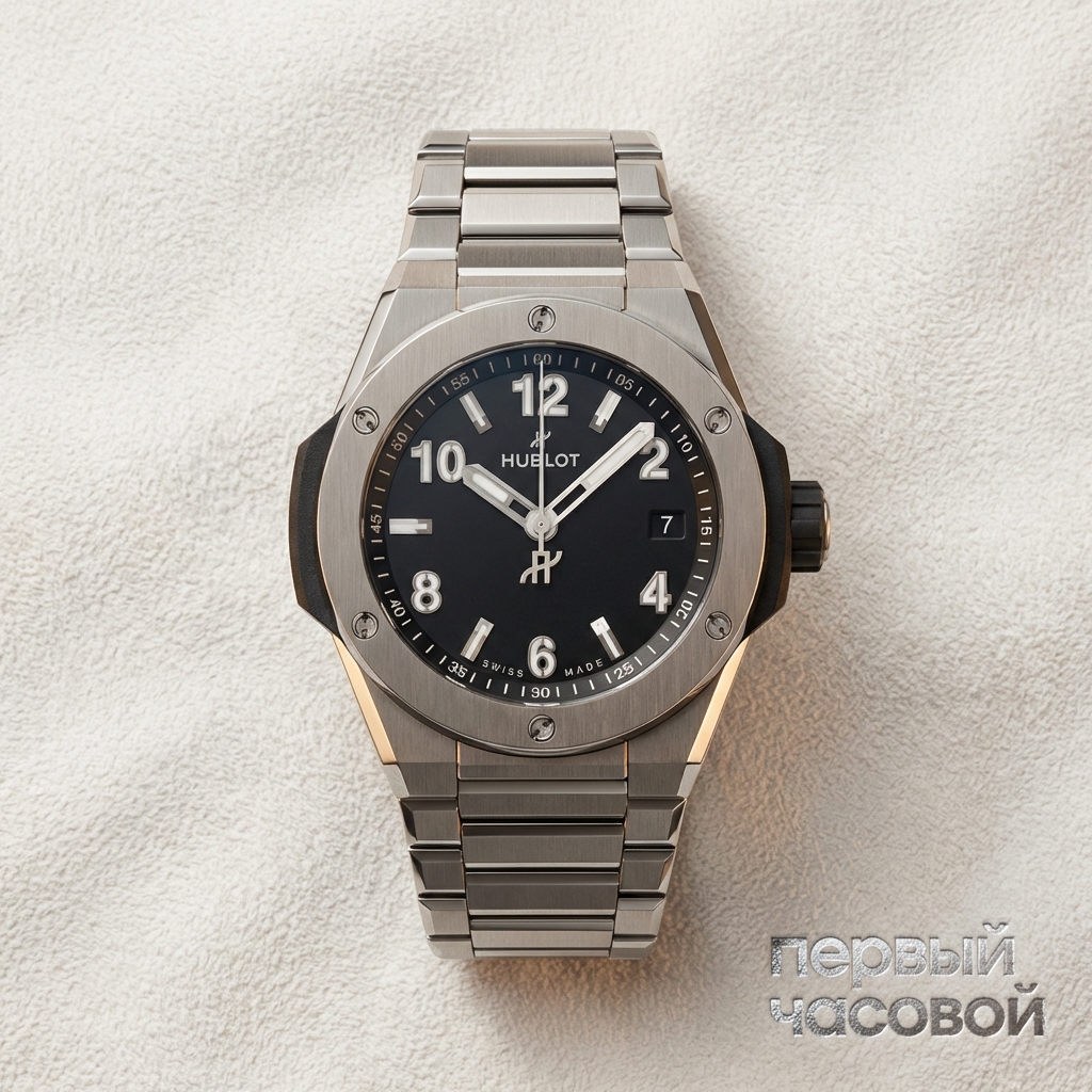 Скажу прямо: 38 мм в линейке Hublot — это неочевидный выбор для тех, кто привык к «шайбам» Big Bang, но абсолютно рабочий вариант для тонкого запястья или статуса «офисных часов», которые обязаны пролезать под манжету. Титановый корпус и браслет дают удивительную легкость: вы просто забудете, что часы на руке, пока не посмотрите время. Механизм здесь — надежная «рабочая лошадка» на базе Sellita, что я записываю в плюсы, так как обслуживание будет стоить копейки по сравнению с мануфактурными калибрами, и любой мастер справится с репассажем с закрытыми глазами.