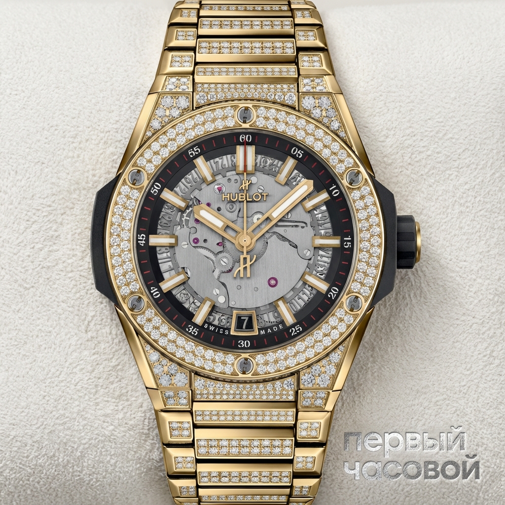 Золотой Hublot без документов — это специфический актив, который требует холодного расчета при покупке. Перед нами размер 40 мм в желтом золоте, который, в отличие от оверсайз-моделей Big Bang, спокойно заходит под манжет рубашки и не выглядит на руке как хоккейная шайба. Это надежная механика в корпусе из драгметалла, где основной бюджет уходит именно в вес золота и узнаваемость бренда, а не в усложнения калибра.
