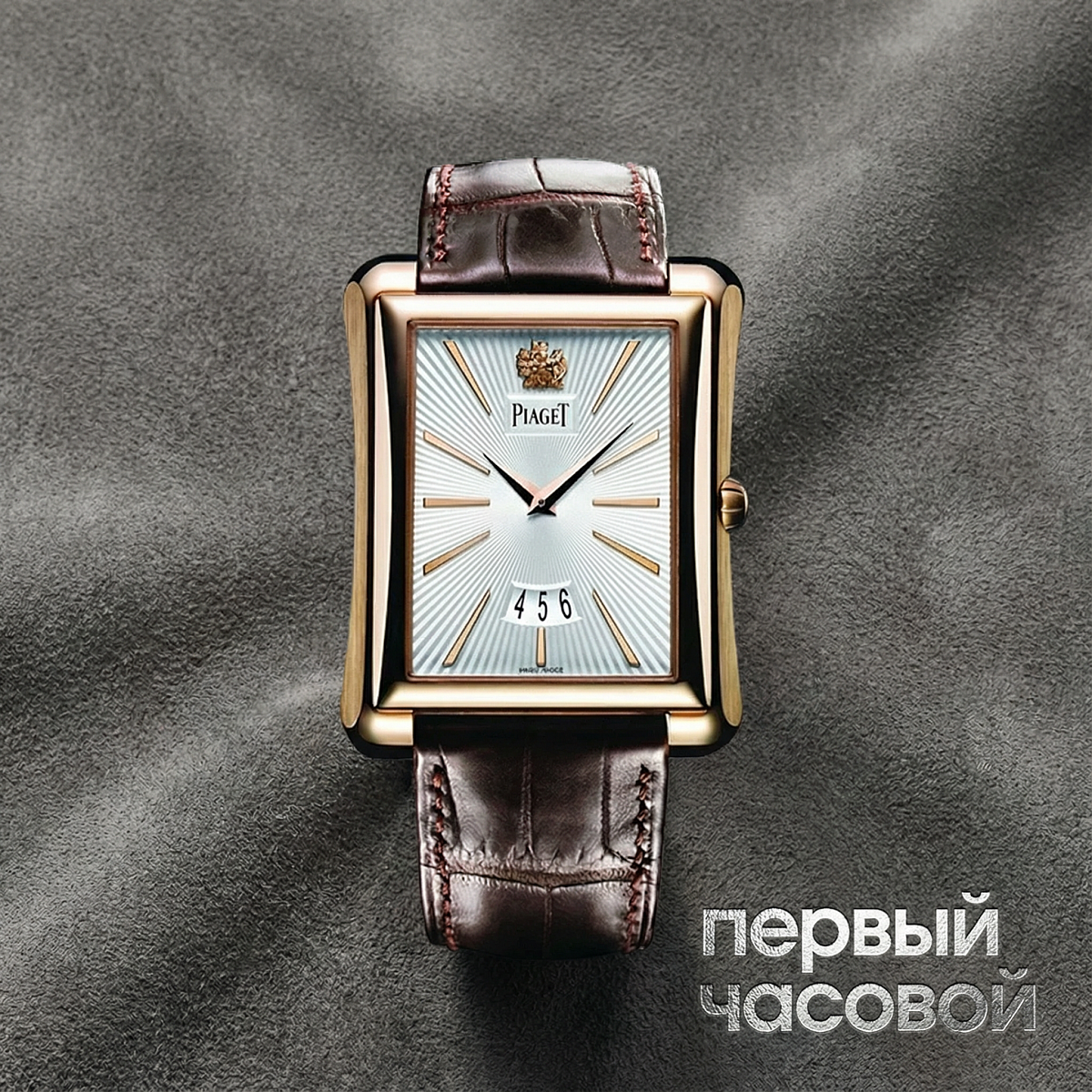 Корпус часов выполнен из розового золота и имеет габариты 37 x 47 мм, что обеспечивает уверенную посадку на запястье при сохранении элегантного профиля. Общий вес изделия составляет 102 грамма — эта цифра подтверждает плотность и использование цельного драгоценного металла без компромиссов в конструкции. Сапфировое стекло защищает циферблат от внешних воздействий, а водонепроницаемость корпуса в 30 метров соответствует стандартам для аксессуаров этого класса, оберегая механизм от случайного контакта с влагой.