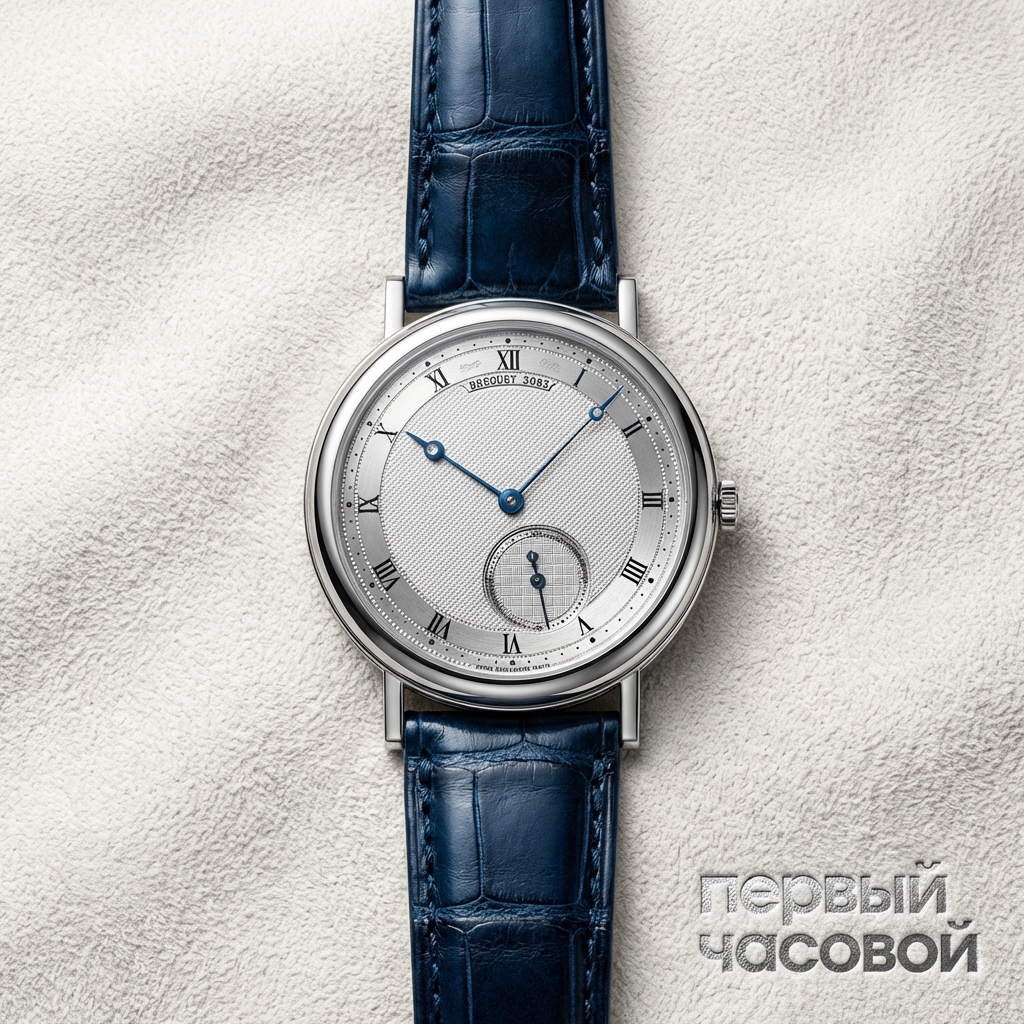 Модель Breguet Classique Ref. 5140BB представляет собой квинтэссенцию часовых кодов мануфактуры, интегрированных в корпус из 18-каратного белого золота. Архитектура 40-миллиметрового корпуса отличается характерным каннелированным (рифленым) профилем, выполненным методом холодной прокатки, и прямыми, паяными ушками, обеспечивающими жесткость конструкции. Циферблат из посеребренного золота демонстрирует виртуозное владение техникой ручного гильоше: центральная зона декорирована мотивом Clous de Paris, в то время как смещенный к отметке «5 часов» малый секундный счетчик выделен иным геометрическим паттерном для визуального зонирования.