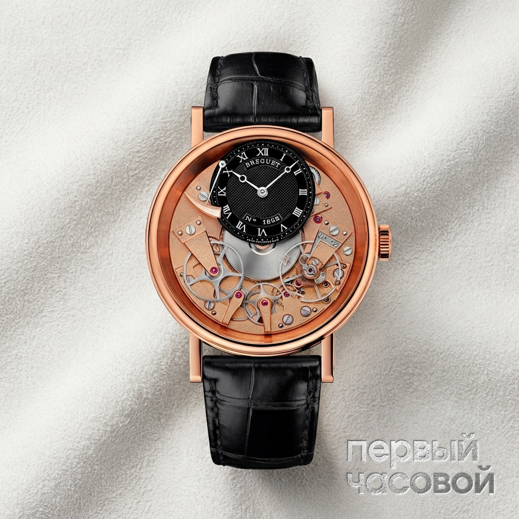 Линейка Tradition — это единственный сегмент в современном каталоге Breguet, который вызывает реальный интерес у коллекционеров и сохраняет адекватную ликвидность на вторичном рынке. В отличие от классических костюмников бренда, модель 7057 в розовом золоте не выглядит архаично, а работает как сложный инженерный прибор на запястье. Главное преимущество конкретно этого референса — покрытие мостов NAC (темно-серый родий): на темном фоне золотые стрелки читаются гораздо лучше, чем в полностью золотых версиях, где всё сливается в одно пятно.