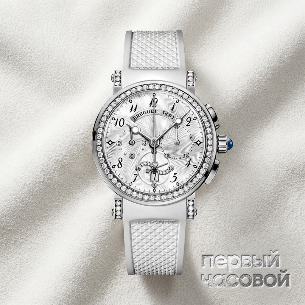 Женский хронограф в белом золоте — это категория для тех, кто уже перерос стандартные Rolex Datejust и хочет настоящую механику. Модель 8828BB интересна тем, что Breguet здесь не пытается заигрывать с чистой «ювелиркой», а оставляет серьезную техническую базу. Калибр 550 — надежный механизм, проблем с обслуживанием у вас не будет, это не капризный турбийон.