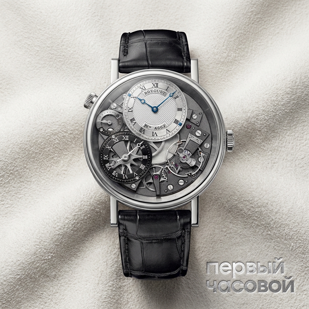 Линейка Tradition — это, пожалуй, единственное, что спасает Breguet от превращения в бренд исключительно для музейных витрин. Конкретно этот референс 7067 в белом золоте — выбор для тех, кто хочет видеть, за что заплатил деньги, не переворачивая часы каждый раз. Сразу о практике: белое золото — материал мягкий и капризный, «паутинка» на полированном ранте появится быстро, а восстановление геометрии корпуса с боковым рифлением — процедура дорогая и сложная.