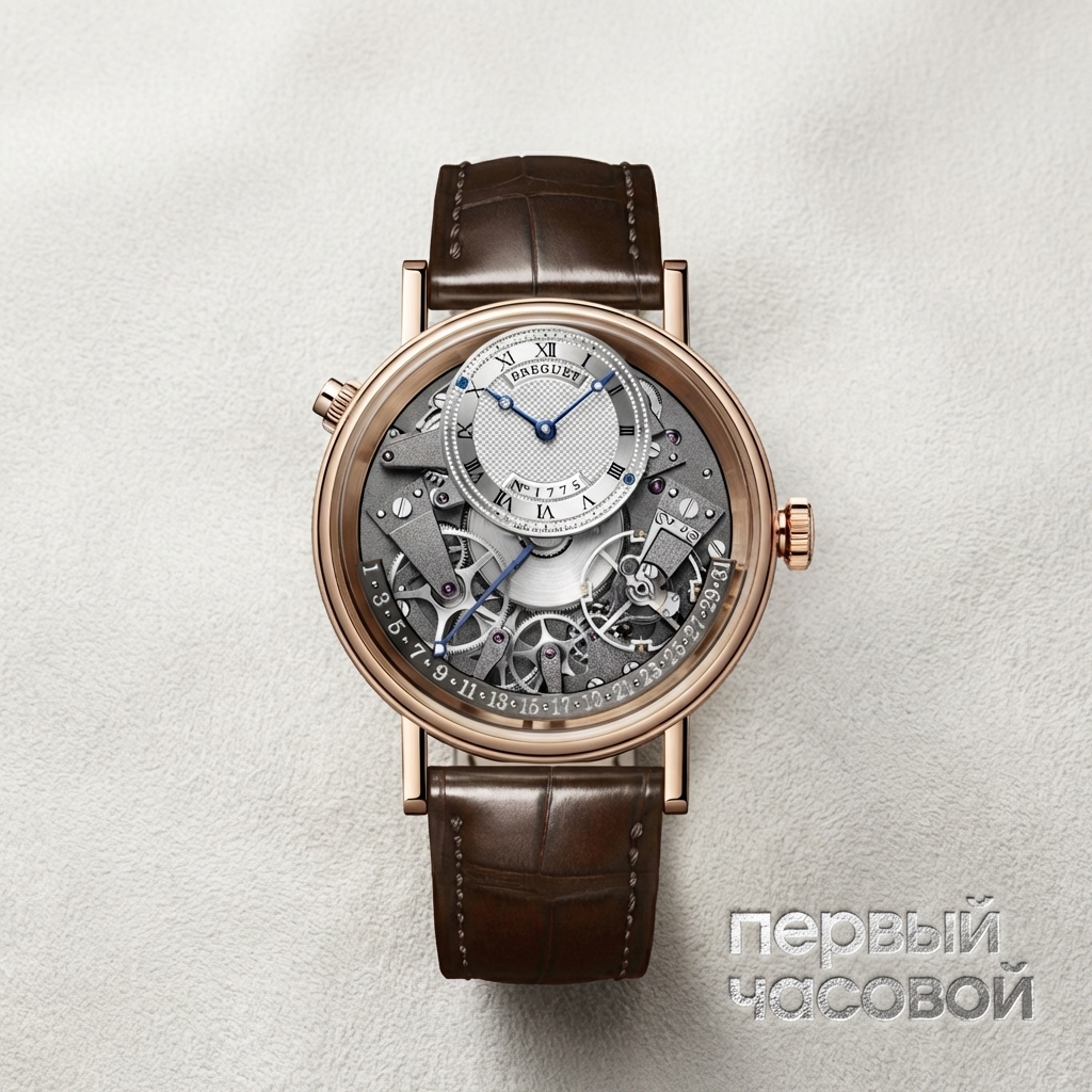 Часы Breguet Tradition Quantième Rétrograde в 40-миллиметровом корпусе из розового золота демонстрируют эталонный подход к деконструкции классического часового механизма.