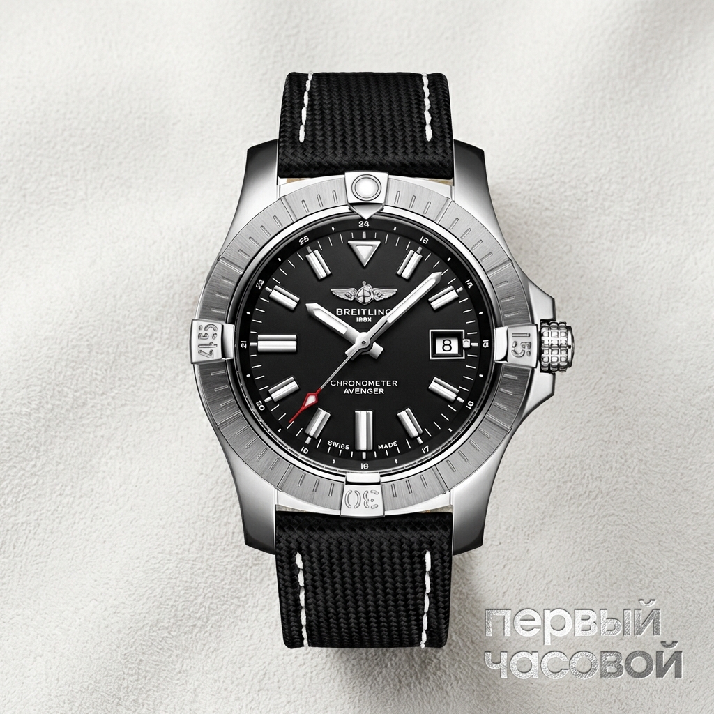 Breitling Avenger в 43-м корпусе — это честный мужской инструмент, который не пытается казаться сложнее, чем он есть. Сразу к делу: размер 43 мм требует уверенного запястья, но благодаря эргономичным ушкам и каучуковому ремню часы сидят плотно и не «гуляют» по руке. Корпус сделан добротно, сталь толстая, сатинирование качественное — царапины будут не так заметны, как на полировке. Водозащита 300 метров здесь честная, можно смело брать в отпуск и не снимать в воде.
