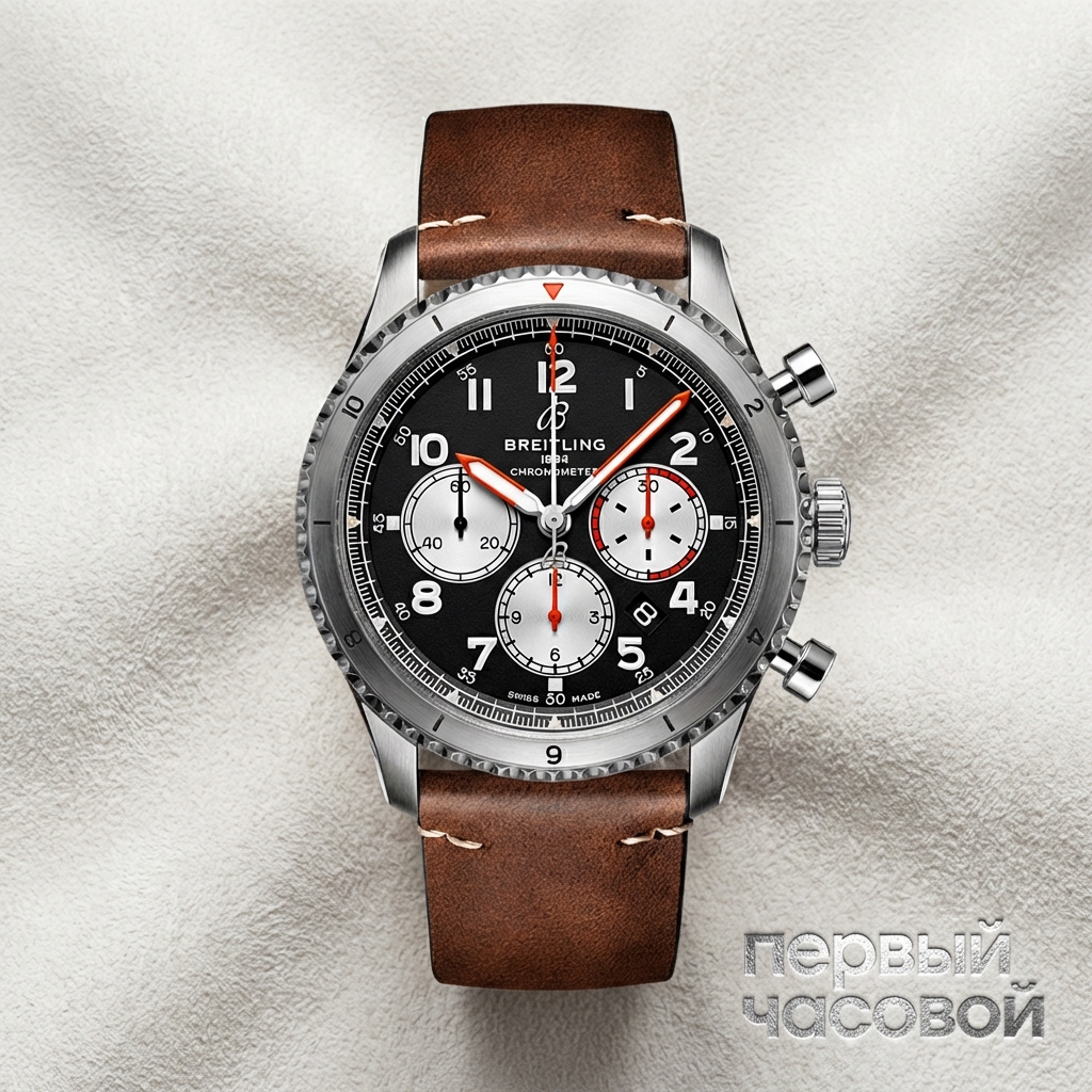 По габаритам 43 мм могут показаться крупными, но это не «шайба». За счет коротких и сильно загнутых вниз ушек корпус плотно облегает запястье, и часы не висят в воздухе. Огромный плюс перед классическим Navitimer — водонепроницаемость 100 метров. Если Navitimer с его 30 метрами потеет от сильного дождя, то этот Aviator 8 — полноценный универсальный солдат, в котором можно не бояться бытовой влаги. Кожаный ремень здесь расходник, но сталь корпуса прочная, полировка качественная. Это надежный механический «трактор» для тех, кому нужны характеристики, а не просто узнаваемый логотип с крыльями.