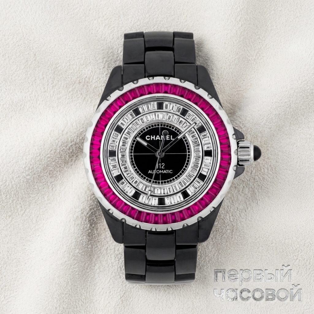 Chanel J12 представляет собой эталонное воплощение концепции «спортивного шика», реализованное посредством передовых технологий обработки материалов. Корпус диаметром 38 мм изготовлен из высокотехнологичной черной керамики на основе диоксида циркония — материала, обладающего твердостью, сравнимой с алмазом, и исключительной устойчивостью к абразивному воздействию.