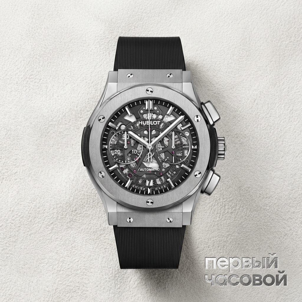 Hublot Classic Fusion Aerofusion в титане — это тот случай, когда размер 45 мм не должен пугать. Благодаря материалу часы на запястье практически не ощущаются, в отличие от стальных аналогов, которые к вечеру начинают тянуть руку вниз как кастет. Скелетонизация здесь выполнена грамотно: выглядит дорого и технично, хотя, будем честны, читаемость циферблата посредственная — стрелки теряются на фоне мостов, и время считывается не мгновенно.
