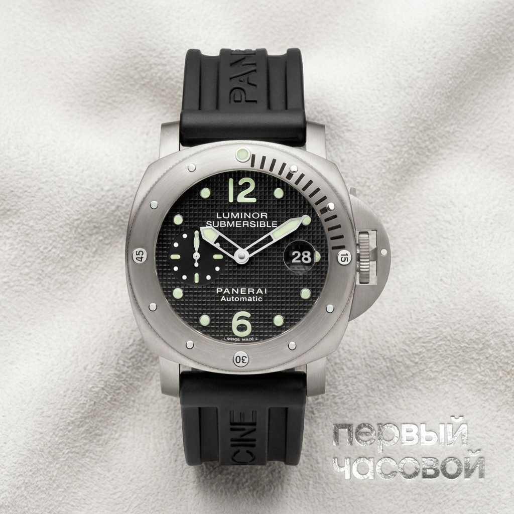 О суровой практике. Давайте честно: стальные 44-миллиметровые Panerai — это часто «гантеля» на запястье, которая к вечеру начинает утомлять. Именно поэтому PAM025 в титане — один из самых разумных выборов для реальной носки. Титан легкий, быстро принимает температуру тела и имеет тот самый правильный матовый оттенок, на котором мелкие царапины выглядят как боевые шрамы, а не как неряшливость.