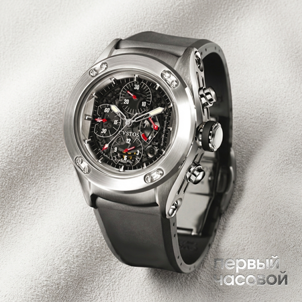 Сразу к делу: Cvstos — это выбор тех, кто любит стилистику Richard Mille, но умеет считать деньги. Перед нами крупный 44-миллиметровый стальной хронограф. На запястье он сидит плотно, ощущается весомо, но под классическую рубашку его запихнуть будет проблематично — это часы под футболку, поло или свободный стиль. Открытый механизм выглядит дорого, чернение добавляет агрессии, при этом читаемость страдает не так сильно, как у других скелетонов.