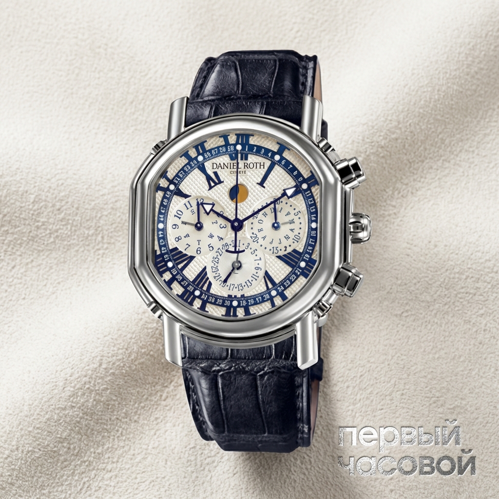 Платиновый Daniel Roth с вечником и хронографом — это выбор взрослого коллекционера, который уже переболел маркетинговыми именами. Сразу к делу: это тяжелые часы. Платина в размере 41 на 44 мм ощущается на руке как серьезный банковский слиток, и к этому весу нужно привыкнуть. Геометрия корпуса специфическая, но именно за этот двойной эллипс бренд и ценят — он не похож ни на круг, ни на «бочку», и сразу идентифицируется в узких кругах.