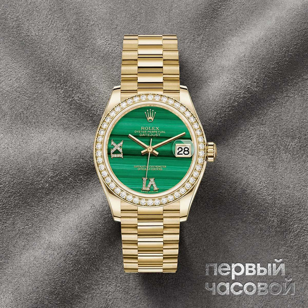 «Сразу к делу: перед нами "малахит" в желтом золоте — Ref. 278288RBR. Если ищите часы, которые будут работать как инвестиция и украшение одновременно, то это именно тот случай. Главная фишка здесь — циферблат из натурального малахита. Каждая модель уникальна по своему рисунку, двух одинаковых вы просто не найдете, а рынок сейчас крайне высоко ценит такие "каменные" циферблаты, особенно на вторичке.
